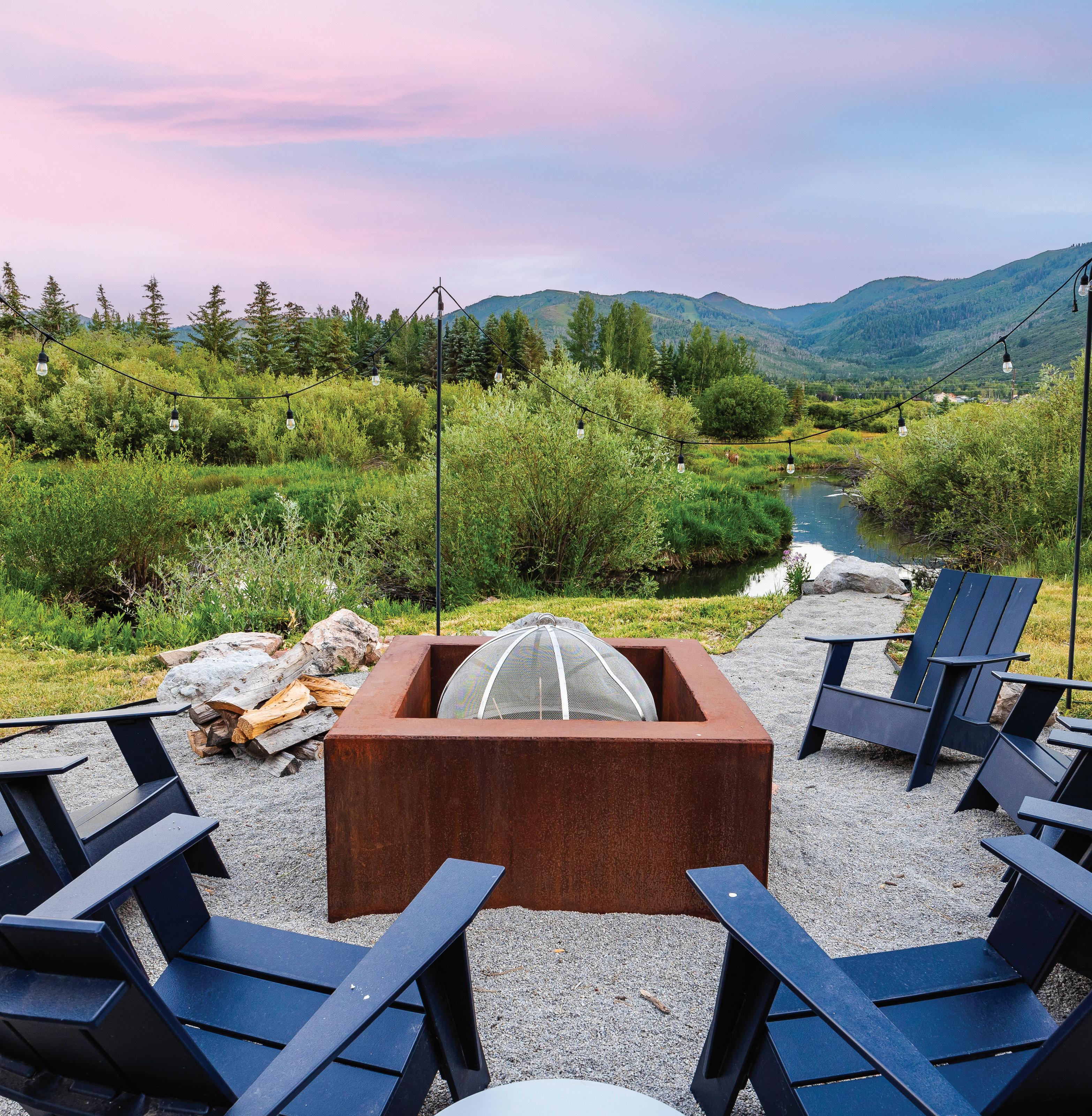 - Fire pit and hot tub with views of the creek and mountains