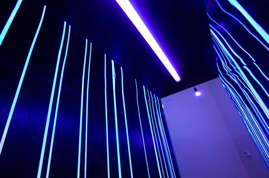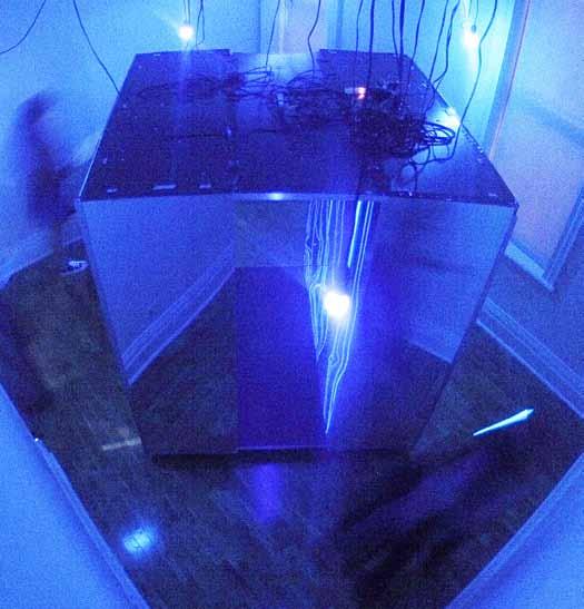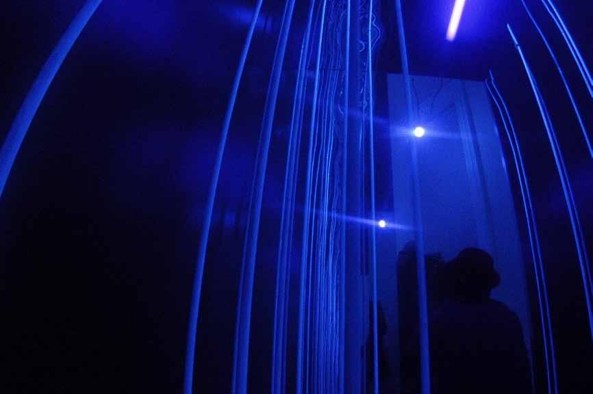 Materiales: Acrílico pulido, madera, metal, luz negra. Dimensiones: 6’x7’x7’ (1800x21002100mm)