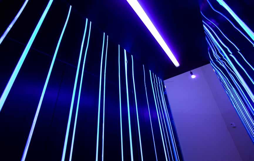 Materials: Polished acrylic, wood, metal, black light Dimensions: 6’x7’x7’ (1800x21002100mm)