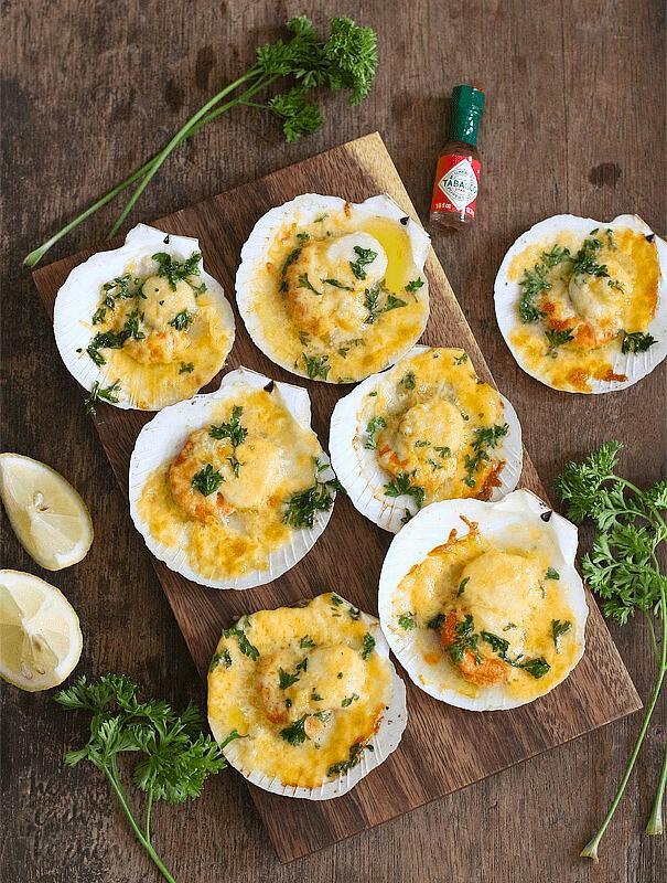 5 udang, 1 king fish, 4 oyster, 6 scallop