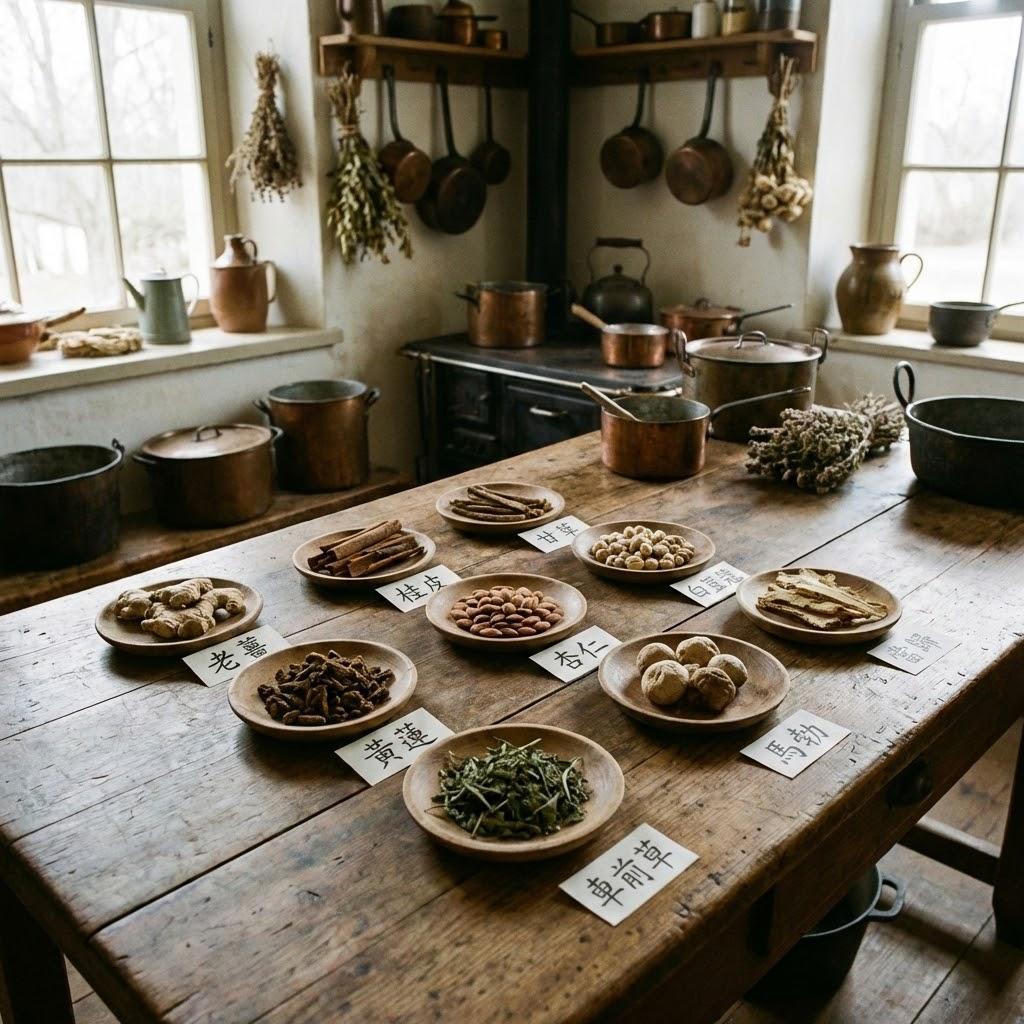 藥材:薑、⾁桂。