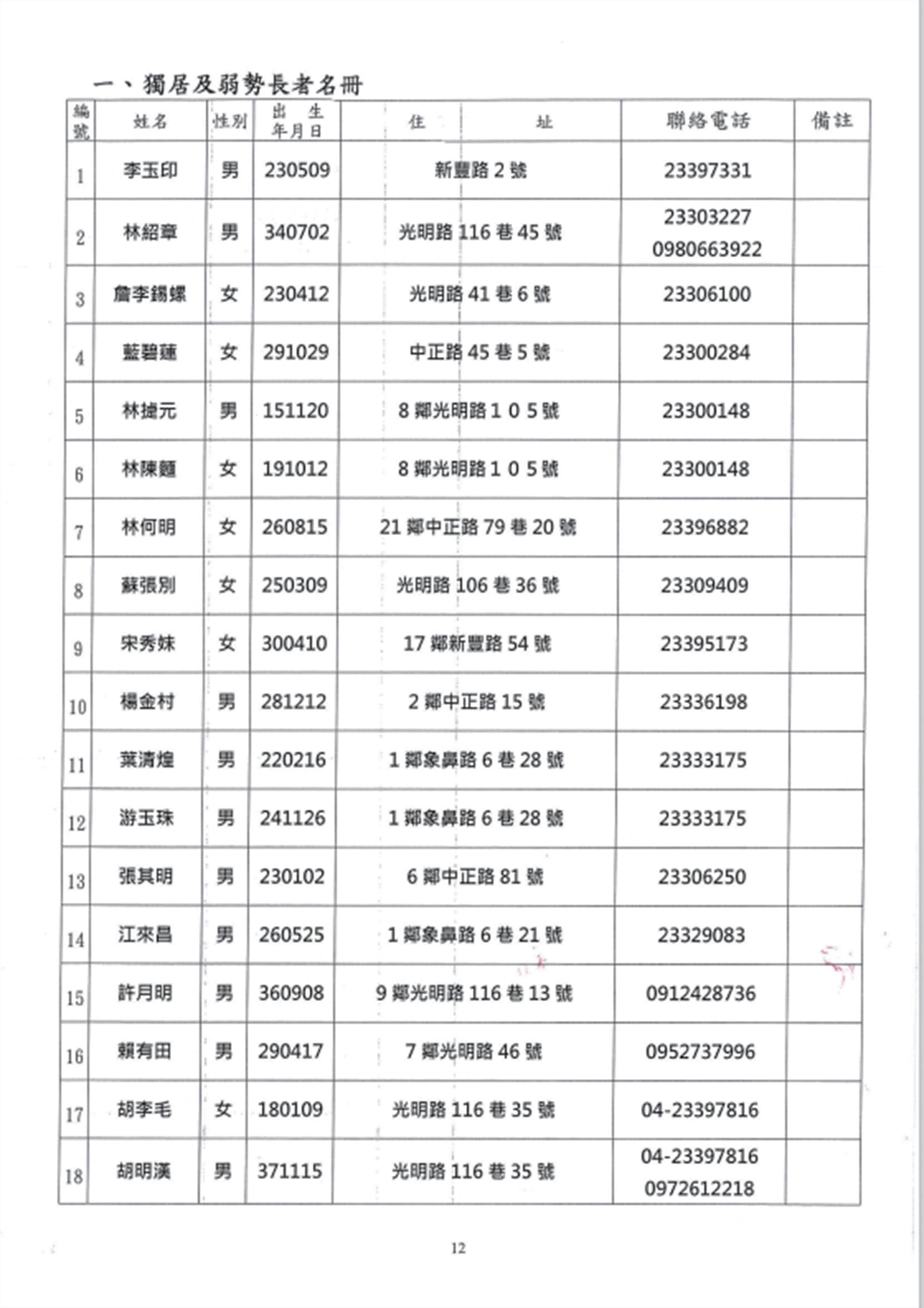 過新年,了解其特殊需家,回報相關單位及時處理。