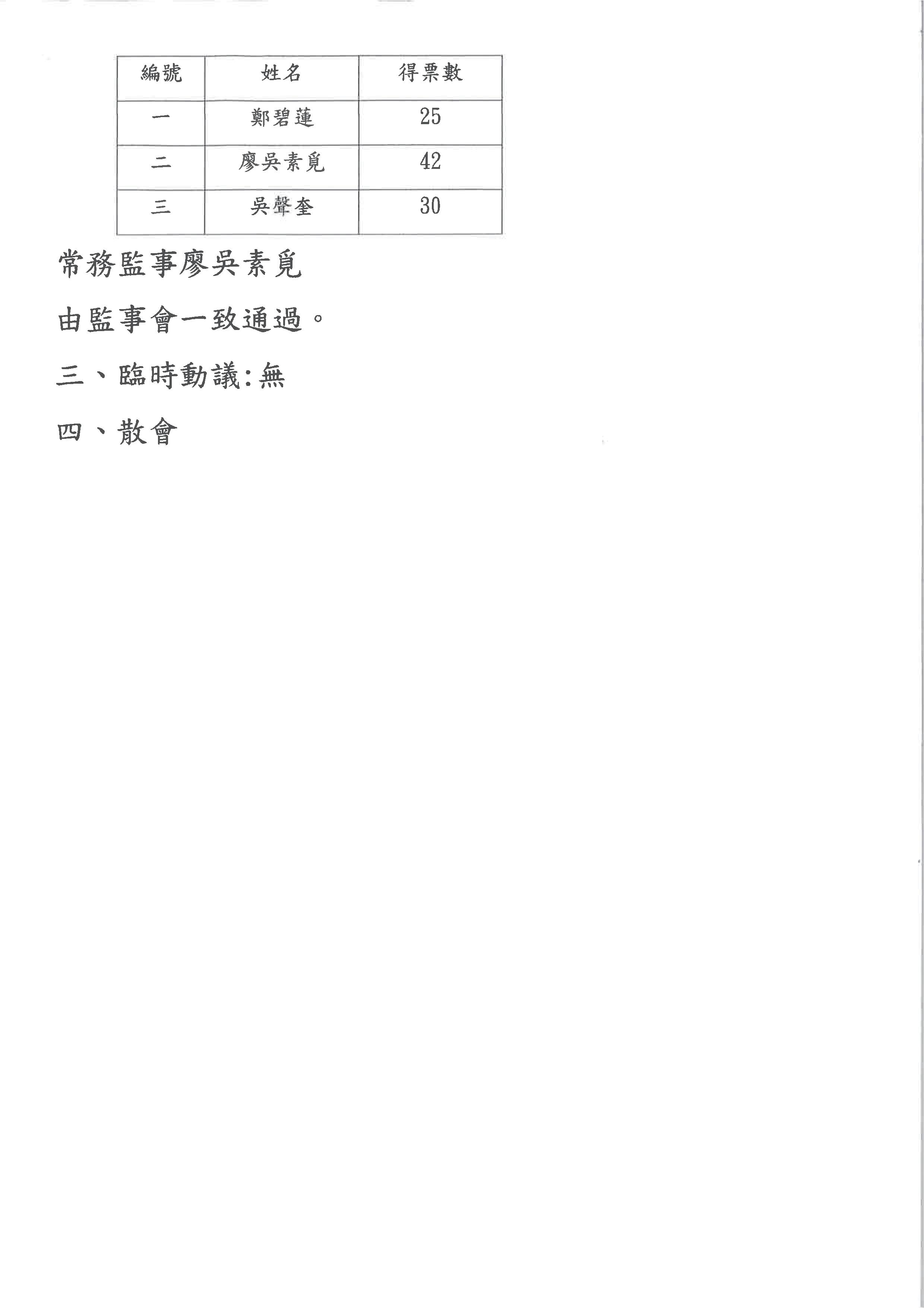出席監事:魏玉霜、廖吳素觅、吳聲奎