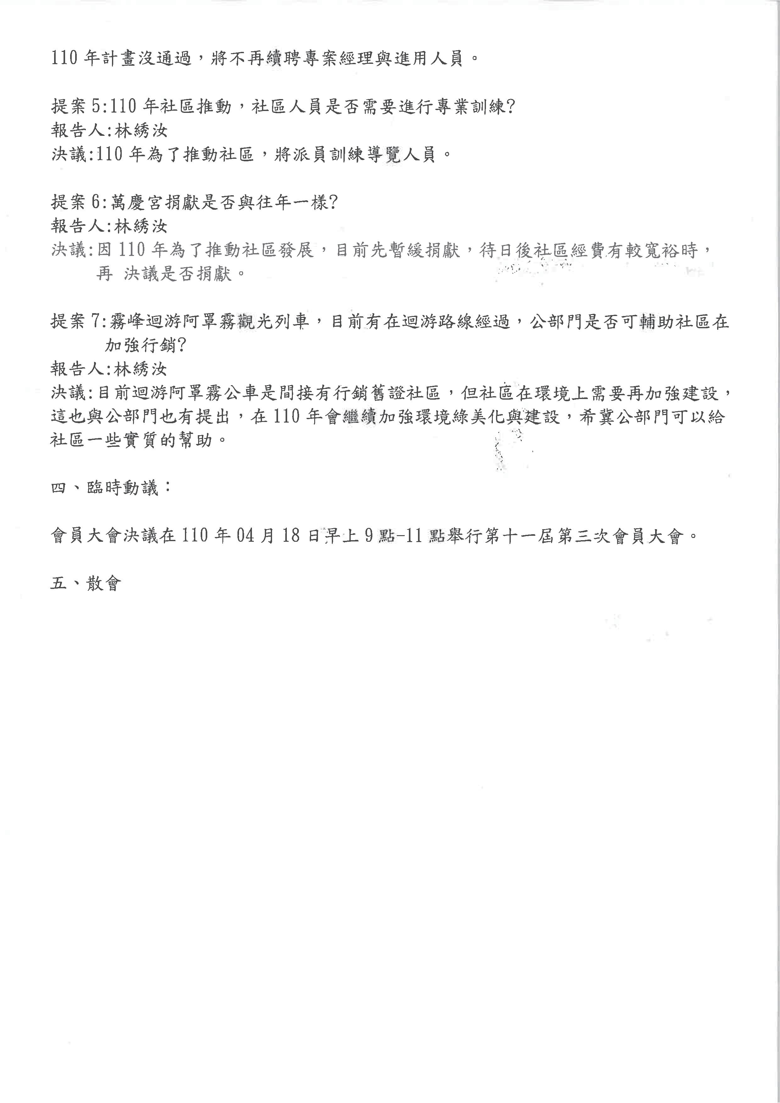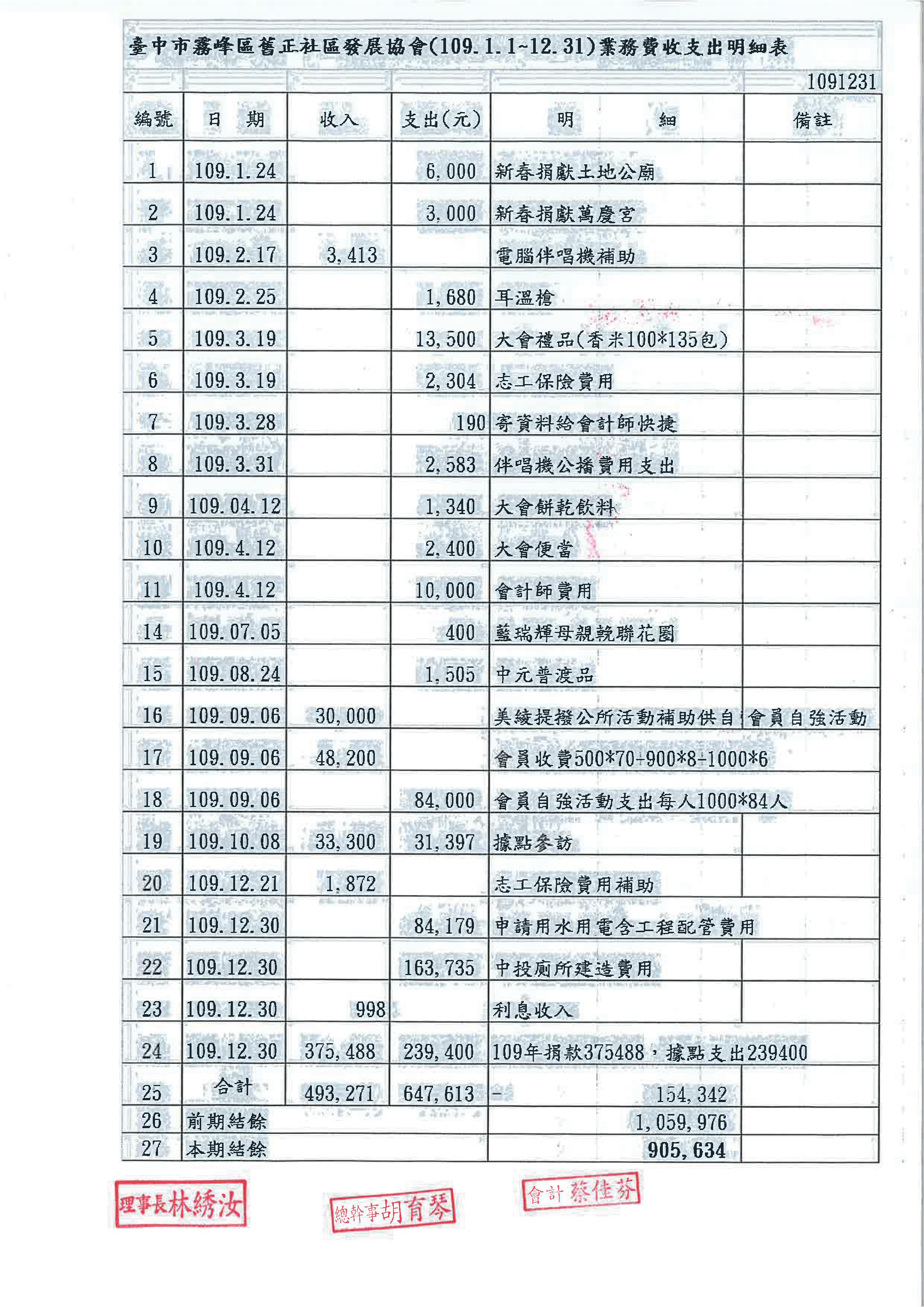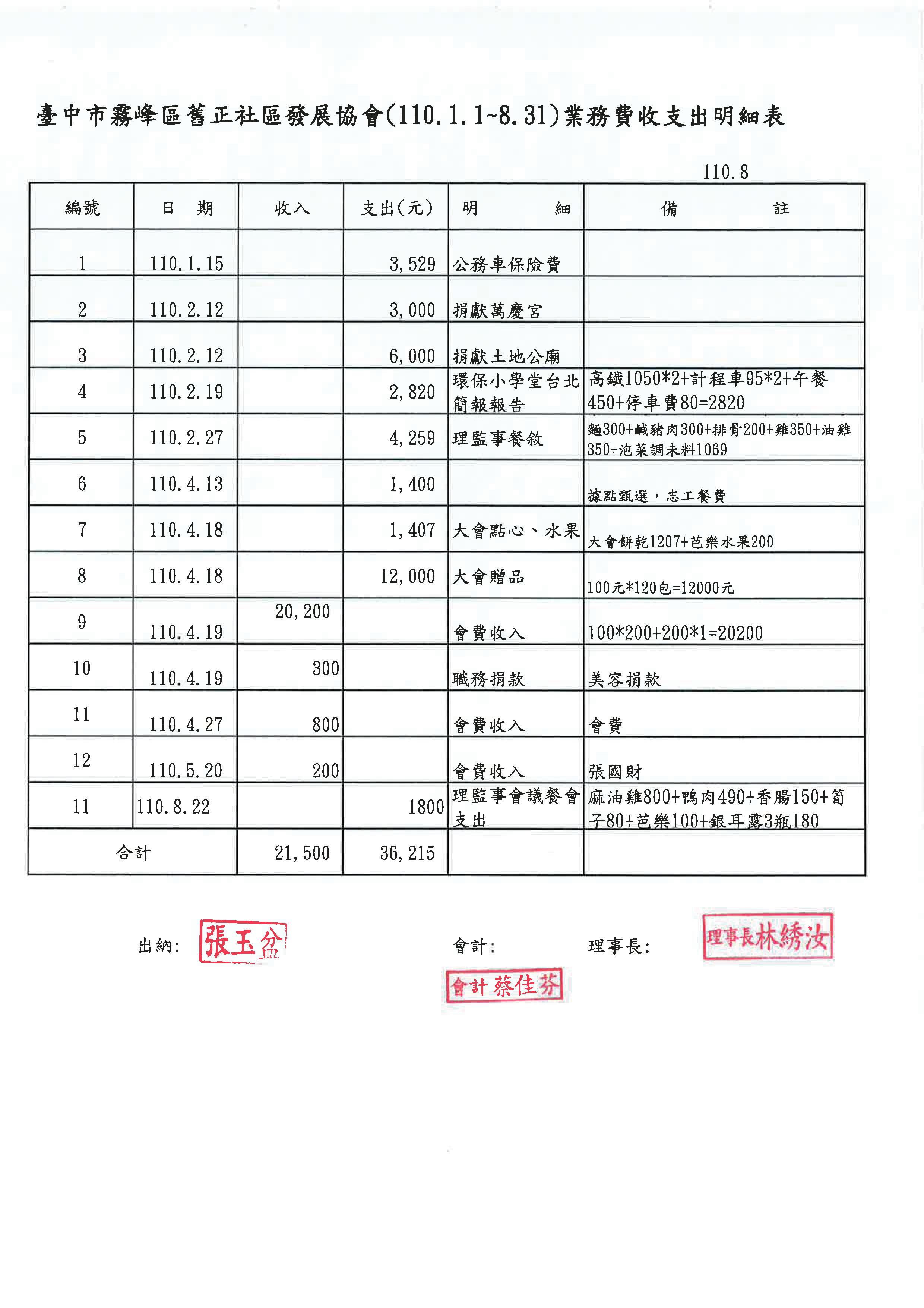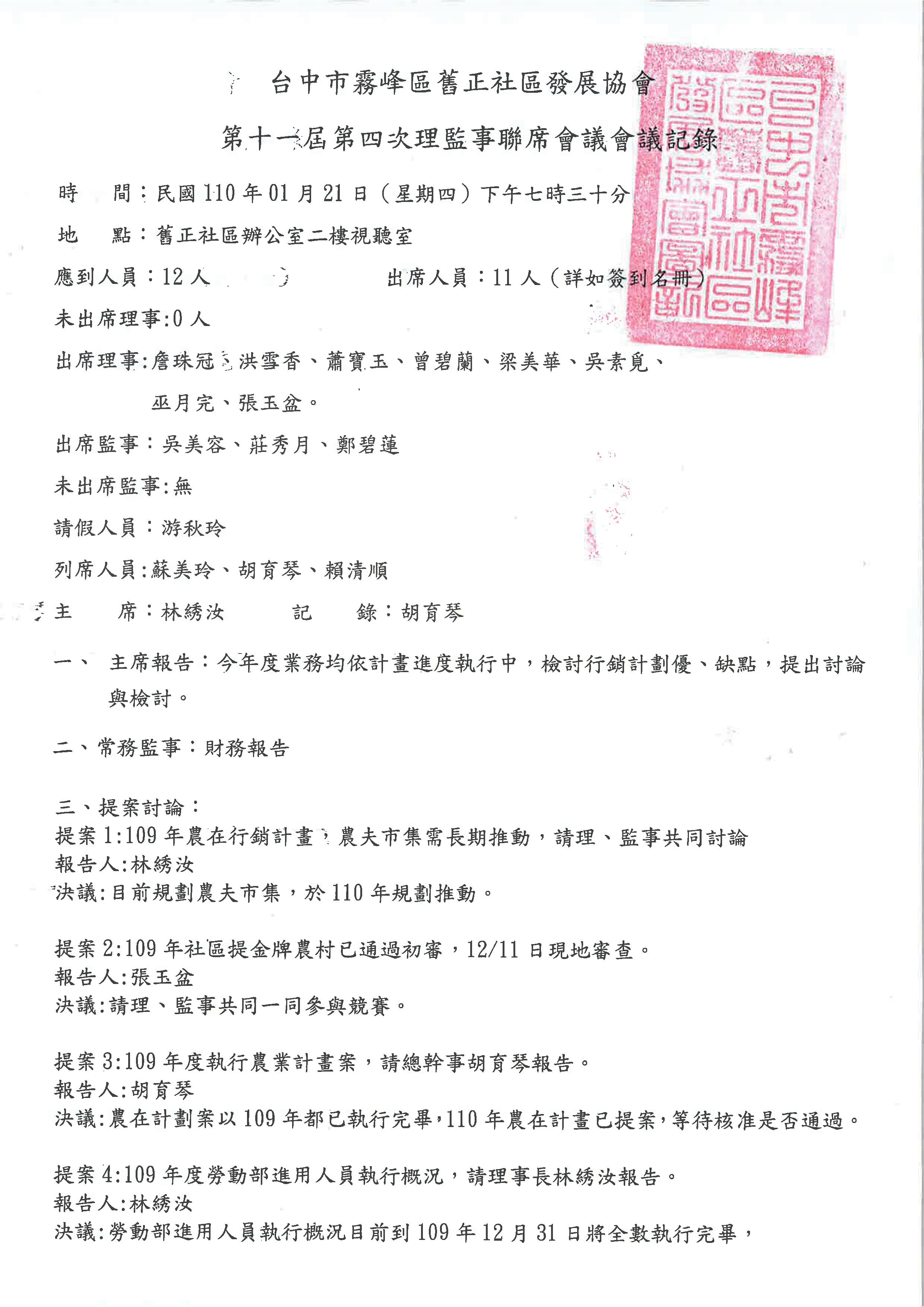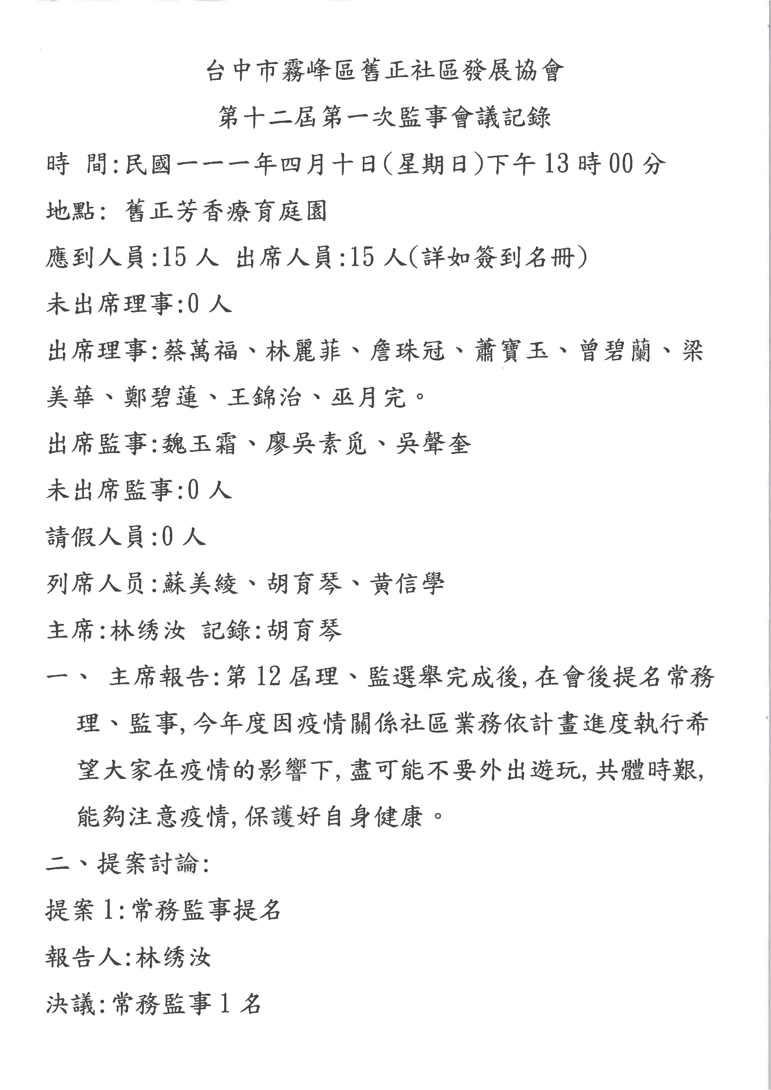 出席理事:林麗華、詹珠冠、王錦治、蕭寶玉、曾碧蘭、蔡 萬福、巫月完、梁美華。