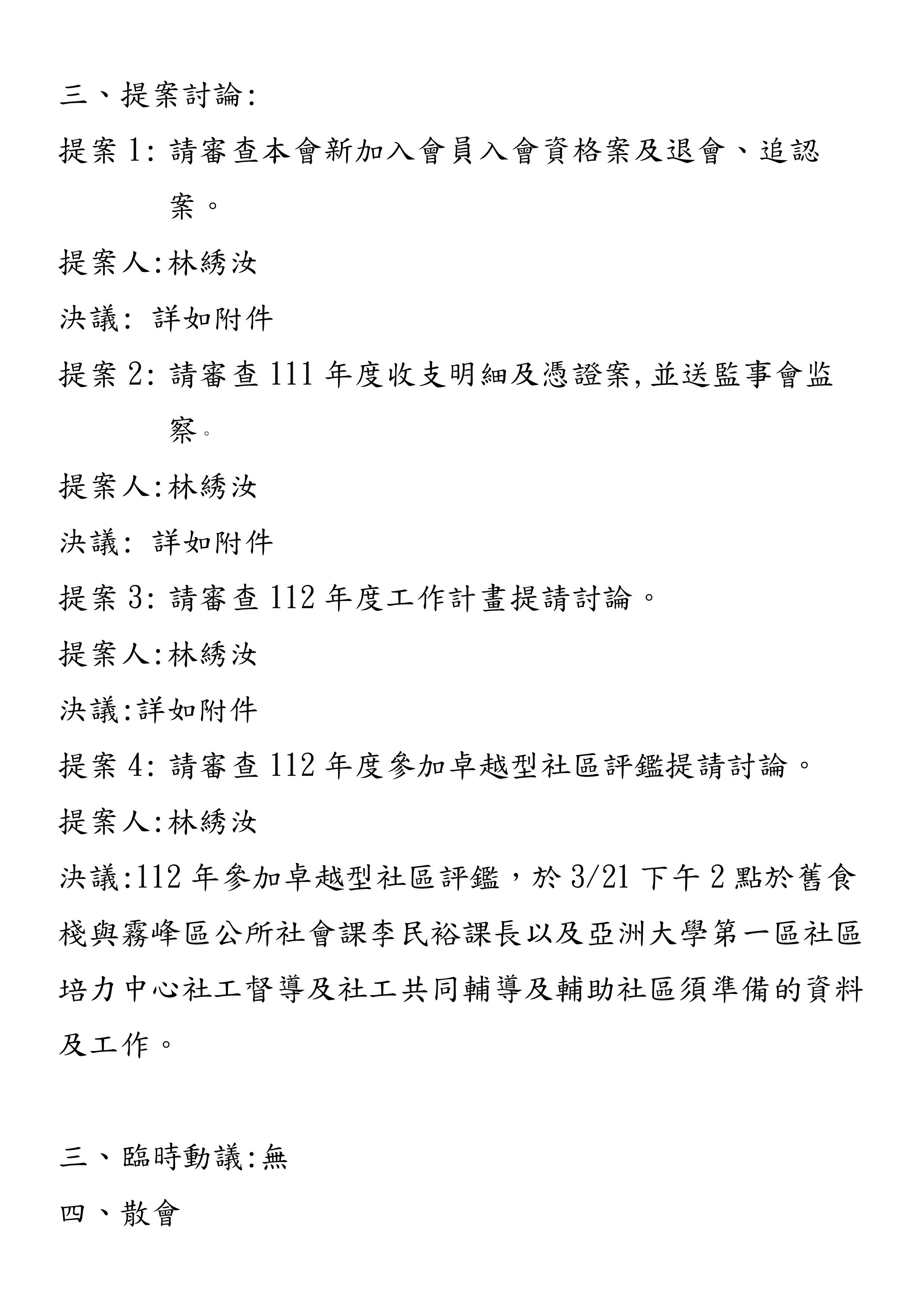 開會事由 :第十 二屆第四 次理事 、監事會 議