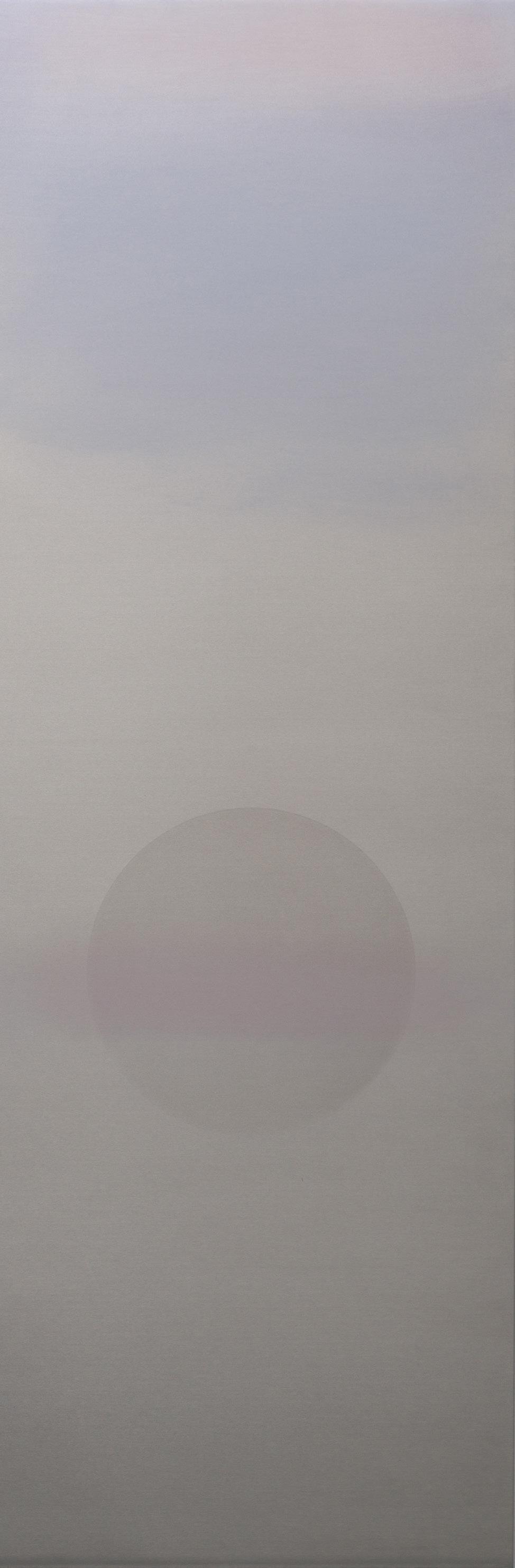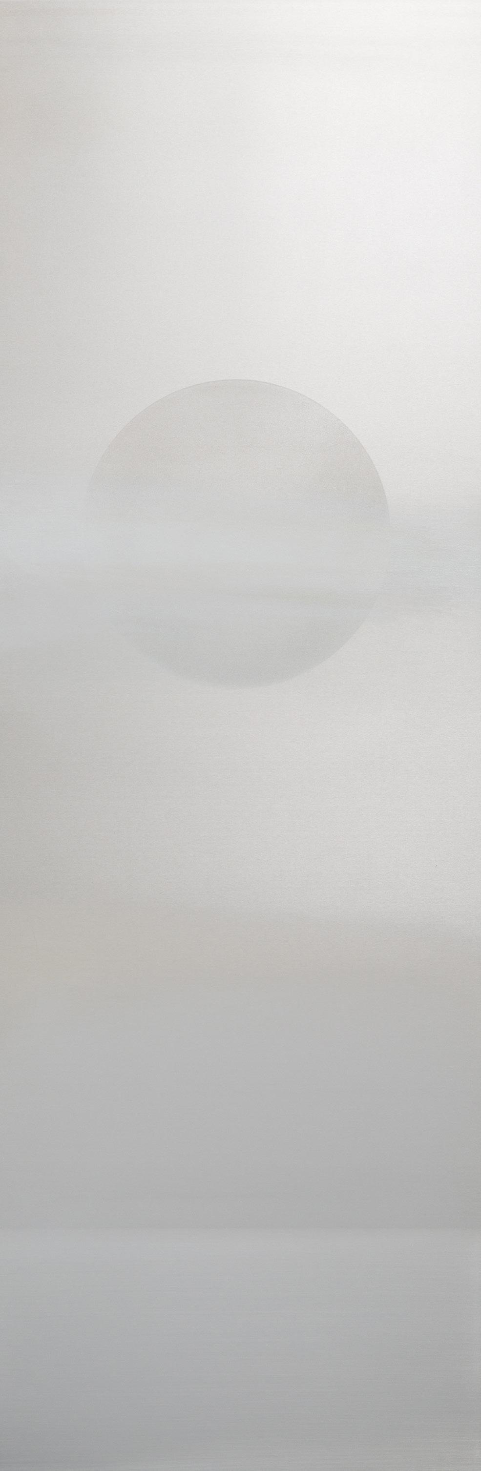 Ando plays with perspective, offering hints of a horizon line or the faintest trace of the moon’s form hidden behind a curtain of mist. These works, she says, investigate the concept of liminal spaces and are part of her new series Oborozuki, a Japanese word for a moon obscured by clouds.