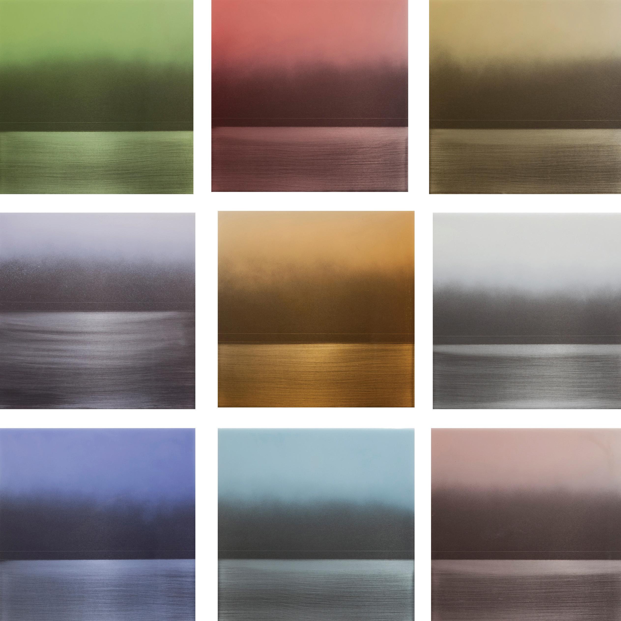 A descendant of Bizen sword makers, Miya Ando was raised among Buddhist priests in a temple in Okayama, Japan, later settling in California and now working in Brooklyn. Combining traditional techniques of her ancestry with modern industrial technology, she skillfully transforms sheets of burnished steel and anodized aluminum into ephemeral, abstract wall-mounted installations suffused with color.