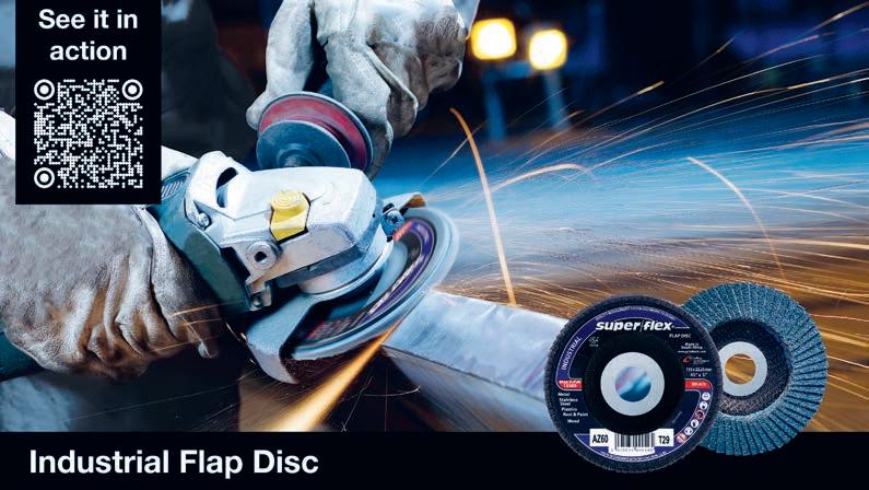 Superflex flap discs are available in a range of sizes, grits and grain types, with the two most popular variants being aluminium oxide, suited to lighter duty work on steel and wood applications, and zirconia alumina, perfect for heavier duty applications on mild, carbon and stainless steel, wood, plastics and other substrates.