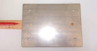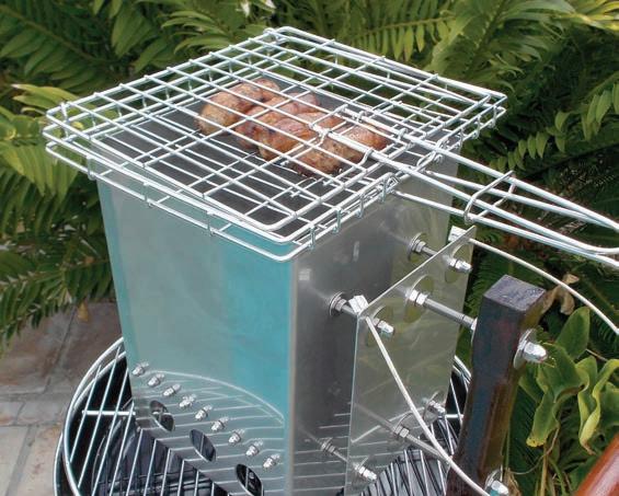 Then, using the predrilled holes in the heat shield, drill the hole for each one through the side of the fire-starter box. It is a good idea to drop a 6mm bolt into each hole as you complete it so that all four of the holes are exactly aligned. I marked a piece of tape on the top of the heat shield with the words ‘TOP OUTER’ so that the securing holes would be exactly aligned. (I positioned the holes as accurately as I could, and they were spot-on, but if one is just even half a millimetre out, the bolts will not seat properly; doing it like this ensures a perfect alignment).