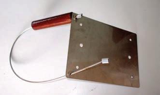 The parts of the tipping handle; the 3mmØ wire rope can be cut short if you wish. Shown here are the heat shield (outer surface), cable, two 5mm washers, two 4mm ferrules, and the tipping handle, already dipped in mahogany finish three times.