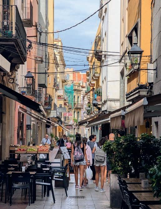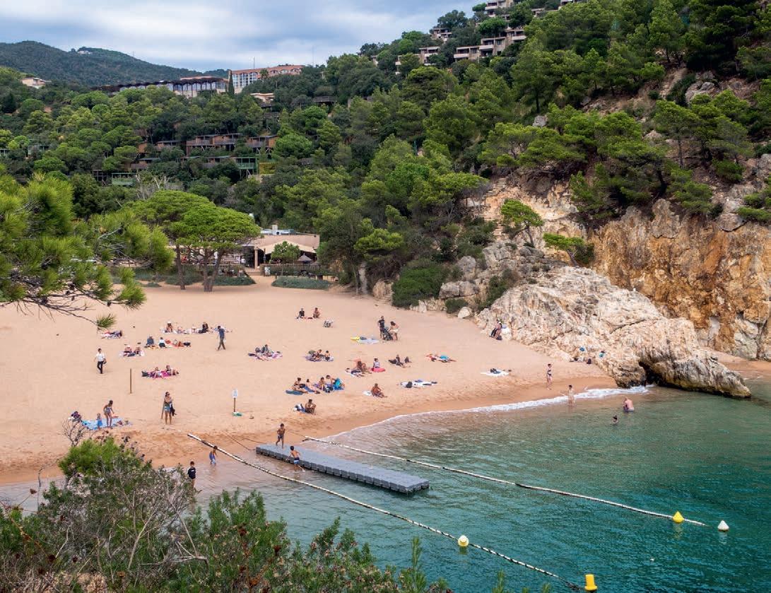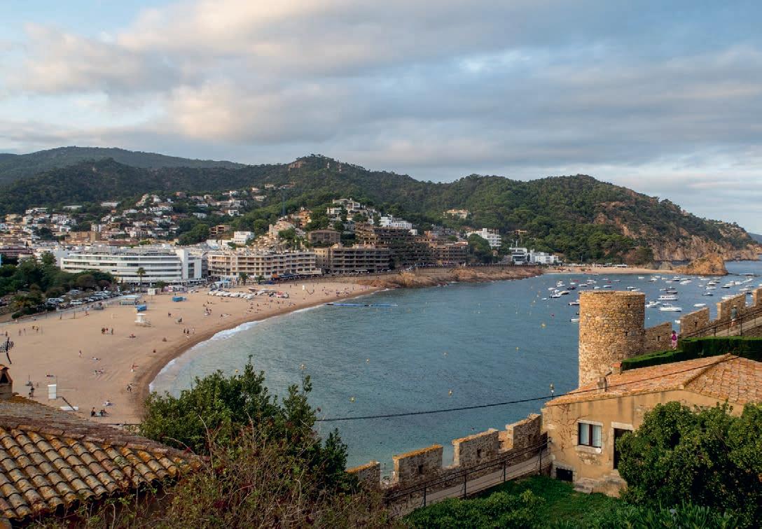 It’s the liveliest part of the picturesque resort town, but a little overwhelming. Far more inviting are the cobbled pathways of the historic walled city, Vila Vella, the only surviving forti ed medieval town on the Catalan coast. Away from the bustle of the beach, the streets of the ancient town climb sharply past gorgeous guesthouses with bougainvillea snaking over the roofs, shops selling tat of a more artisanal nature and little restaurants up to the Cap de Tossa lighthouse. It’s the perfect spot to take in the sunset as it bathes the stone