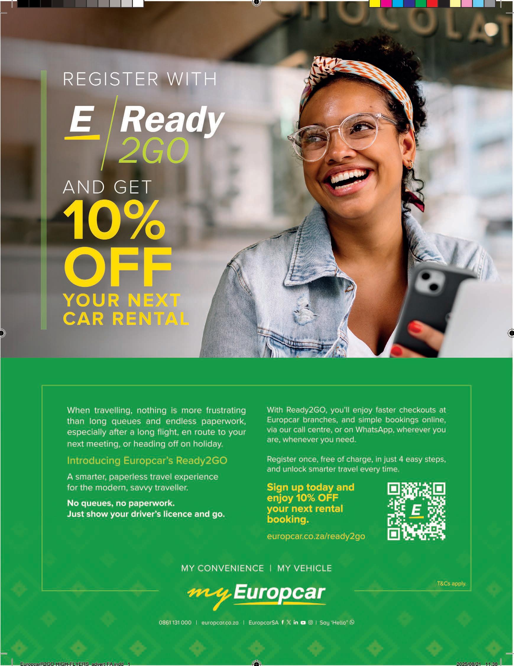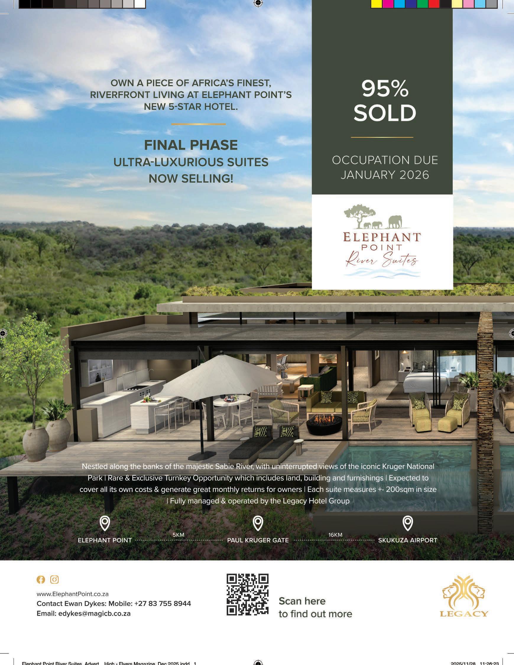 elcome to this edition of High-Flyers, where curiosity meets adventure, and every journey is a chance to discover something extraordinary. From the sun-drenched shores of Spain’s Costa Brava to the hidden gems of Africa’s most enchanting hotels, this issue celebrates travel in all its forms – whether it’s the thrill of solo exploration, the luxury of a well-deserved getaway or the joy of packing light and chasing experiences across the globe. Travel transforms, inspires and connects us. In these pages, we invite you to dream bigger, explore further and embrace the freedom only the skies can offer. Pack your bags, fasten your seatbelt and let your next adventure take ight. This issue also serves up a feast for all senses – from South Africa’s vibrant culinary scene to playful holiday adventures for kids, insights into pet life chaos and a front-row look at Louis Oosthuizen leading the LIV Golf spectacle to our shores. There’s something here for everyone, whether you’re chasing sun, thrills, avours or unforgettable experiences.