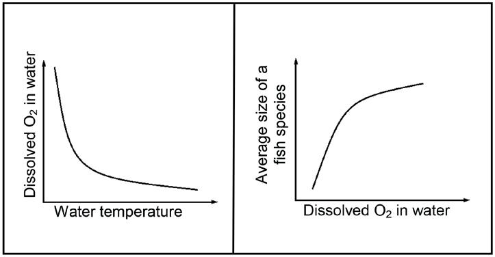 1.1.10 The graphs below represent the results of an investigation to determine if there is a possible relationship between temperature and the dissolved oxygen content of water and fish size.