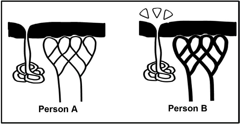 1.1.3 Diagram A and diagram B below represent the same part of the same human eye under different conditions.