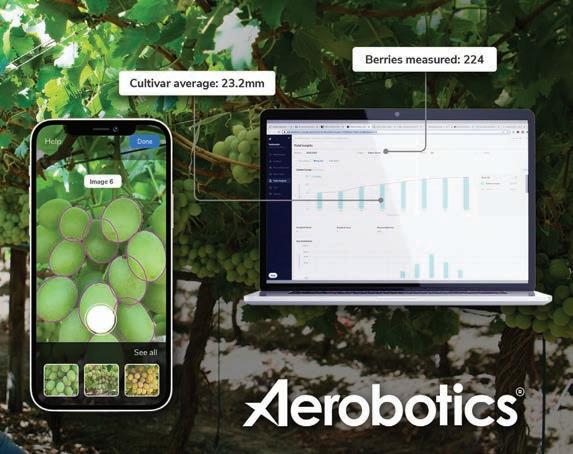 “Our rst product utilised high-resolution aerial imagery to provide individual plant performance metrics for orchards and vineyards,” says Paterson. “We then went on to create a second product that uses mobile phone imagery and machine learning algorithms to automatically identify and size the fruit in the eld. It also provides size distribution and growth curve data throughout the season for citrus, apples, stone fruit and grapes.”