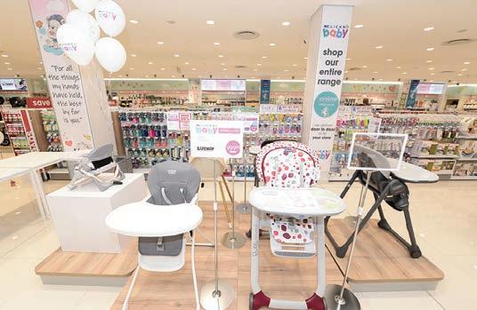 There are special considerations when creating a dedicated baby goods shopping experience. The stores have been designed purposefully with convenience in mind, featuring wider aisles for prams and strollers, dedicated areas for breastfeeding and nappy changing, a kiddies corner to entertain toddlers, a gift registry and a wrapping service. The stores also offer webinars and baby educational sessions hosted in partnership with baby experts. Furthermore, the online shopping experience is available in-store, where well-trained service advisers with good knowledge of the range are equipped with tablets to navigate customers through the online assortment, with the option of home delivery or Click & Collect at any Clicks store in the country.