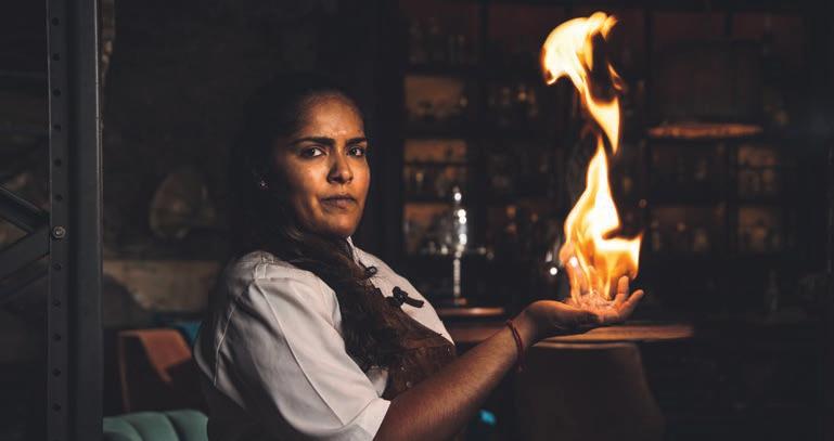 “I think men assume that we women are only nurturing, only uplifting,” Naidoo adds. “They forget that women are also strong.” Starting as a young chef, she found herself in all-male kitchens where the atmosphere was borderline juvenile, full of sexist pranks and behaviour that would never fl y under her watch. She prefers to focus on the business of making great food.