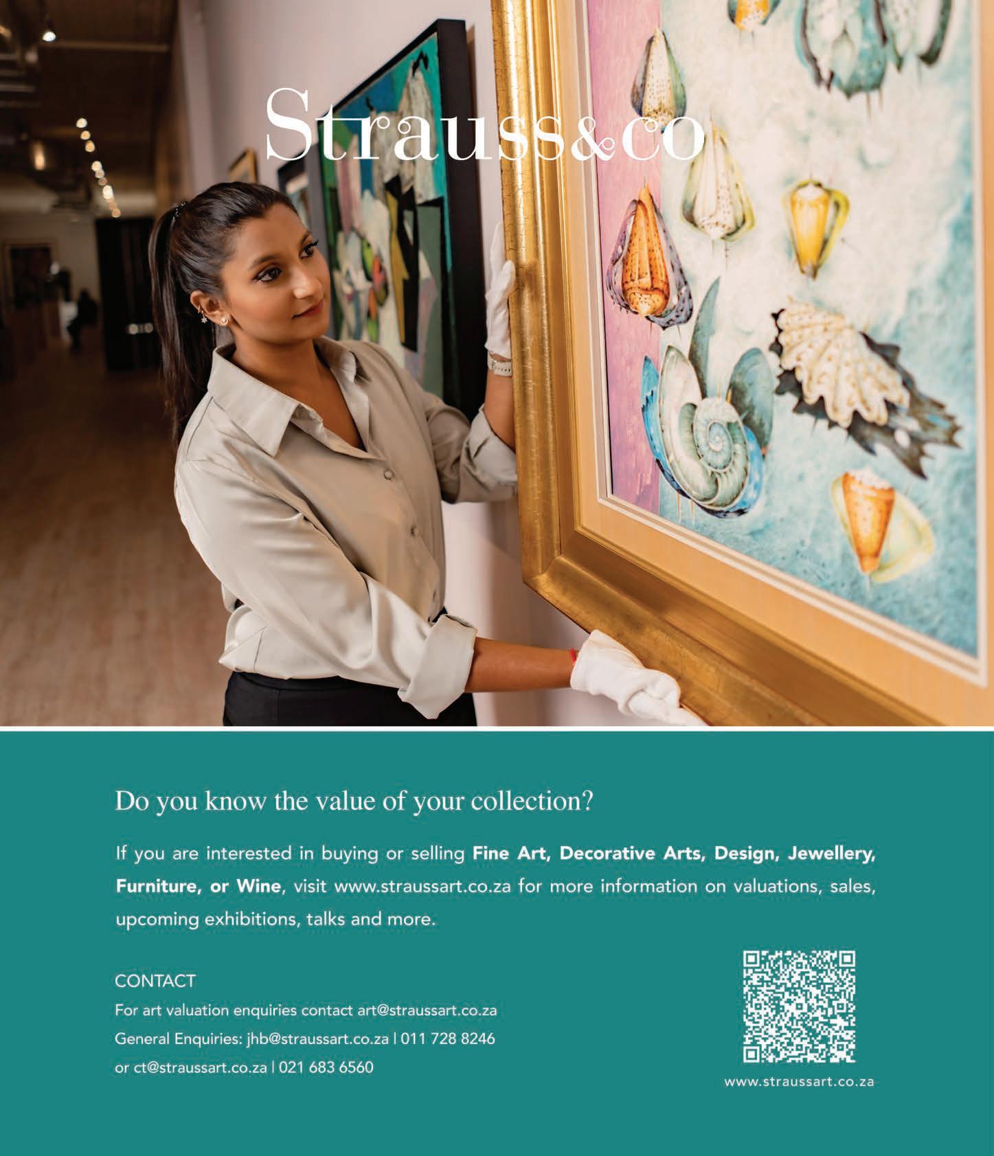 In 2025, African modernism will form an integral part of the new-look Michael C. Rockefeller Wing of The Metropolitan Museum in New York when it nally re-opens. Plans are also afoot in Berlin, London and Paris to survey the individual practices of important modernists. The unstinting commitment of South African collectors to modernist artists from this country is nally receiving wider recognition. Strauss & Co has played a vital role in this process and will continue to offer its expertise as an auction house. We are also committed to facilitating meaningful conversations and publishing initiatives that enrich the appreciation of our diverse and astonishing artistic output of the last two centuries.