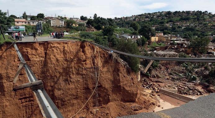 Early this year, KwaZulu-Natal was hit by severe ooding after heavy rains, resulting in at least 22 deaths and damages of over R3.1-billion. A national state of disaster was declared to speed up relief and rebuilding efforts.