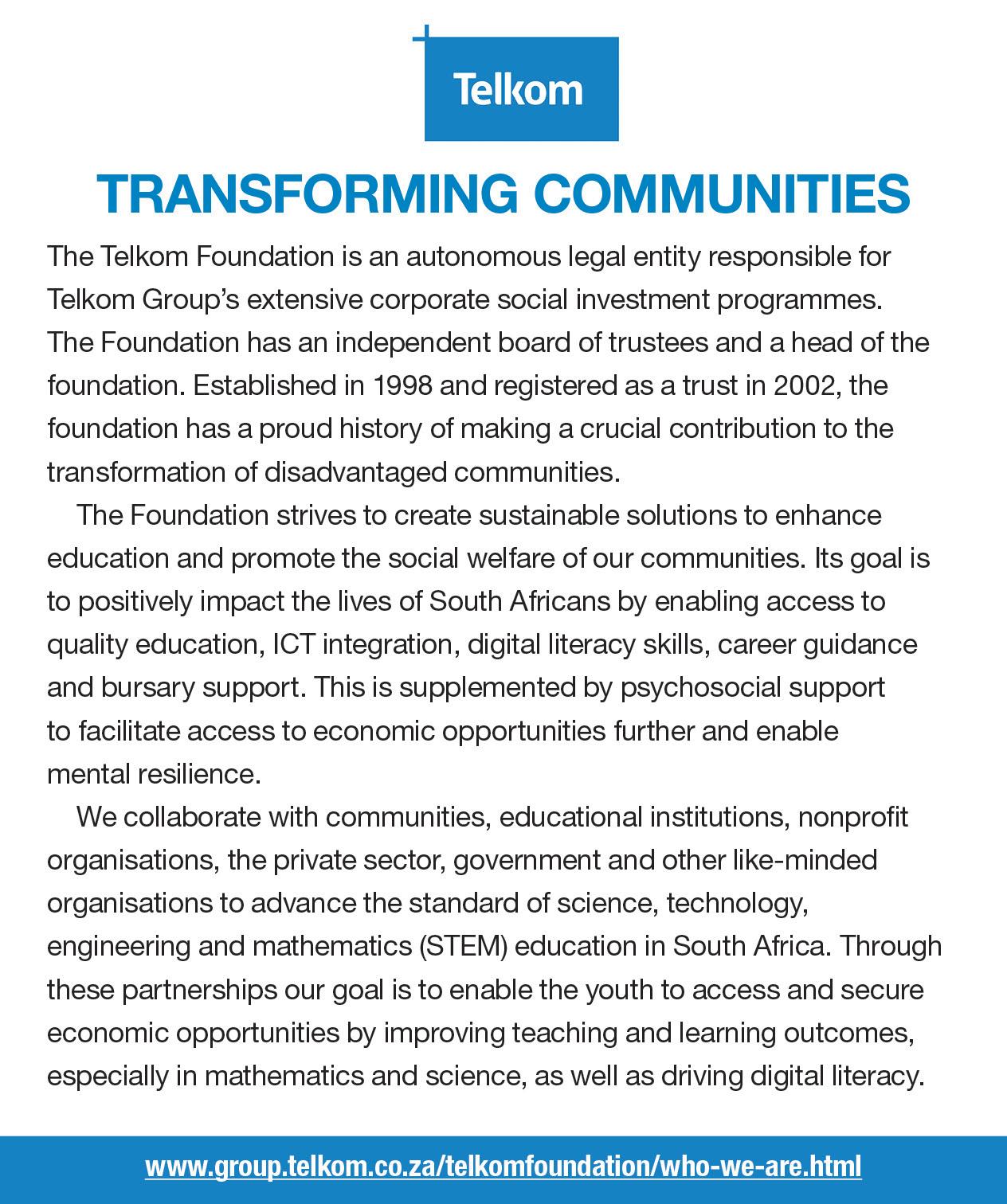 “These subjects teach students logic, reasoning, analytical and critical thinking – important for exploring, understanding and explaining the world we live in. STEM (science, technology, engineering and mathematics) subjects enable us to discover new things and use what we know to make predictions and solve problems,” says Mabitsela.