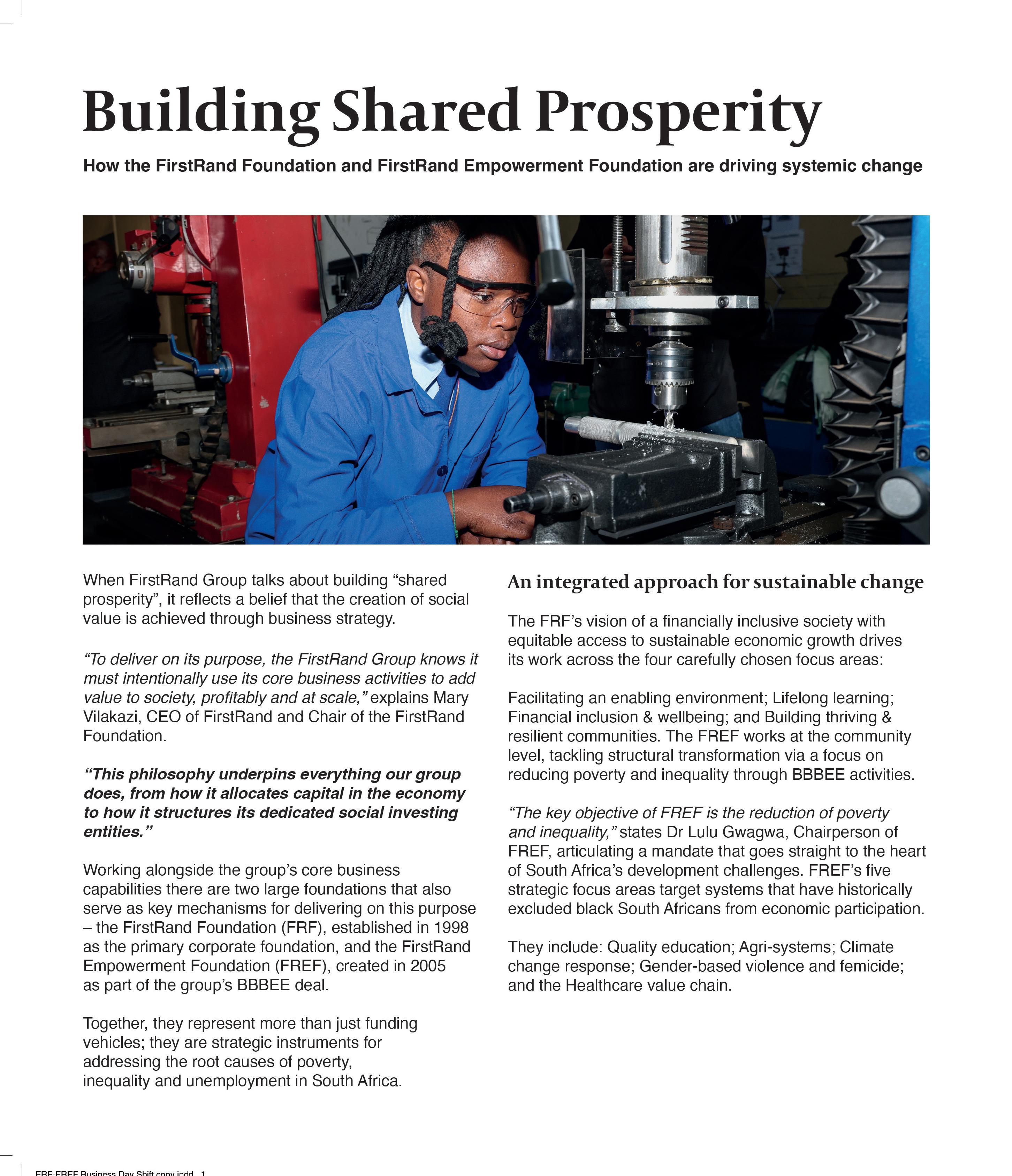 It is against this background that the work we highlight in this publication becomes so important. Our theme for this publication, “Creating meaningful social impact in a new global reality”, is something socially conscious people worldwide grapple with, despite struggling economies and con icts in many parts of the world led by rich men who have no desire to create a better world for the majority as long as they can line the pockets of the few.
