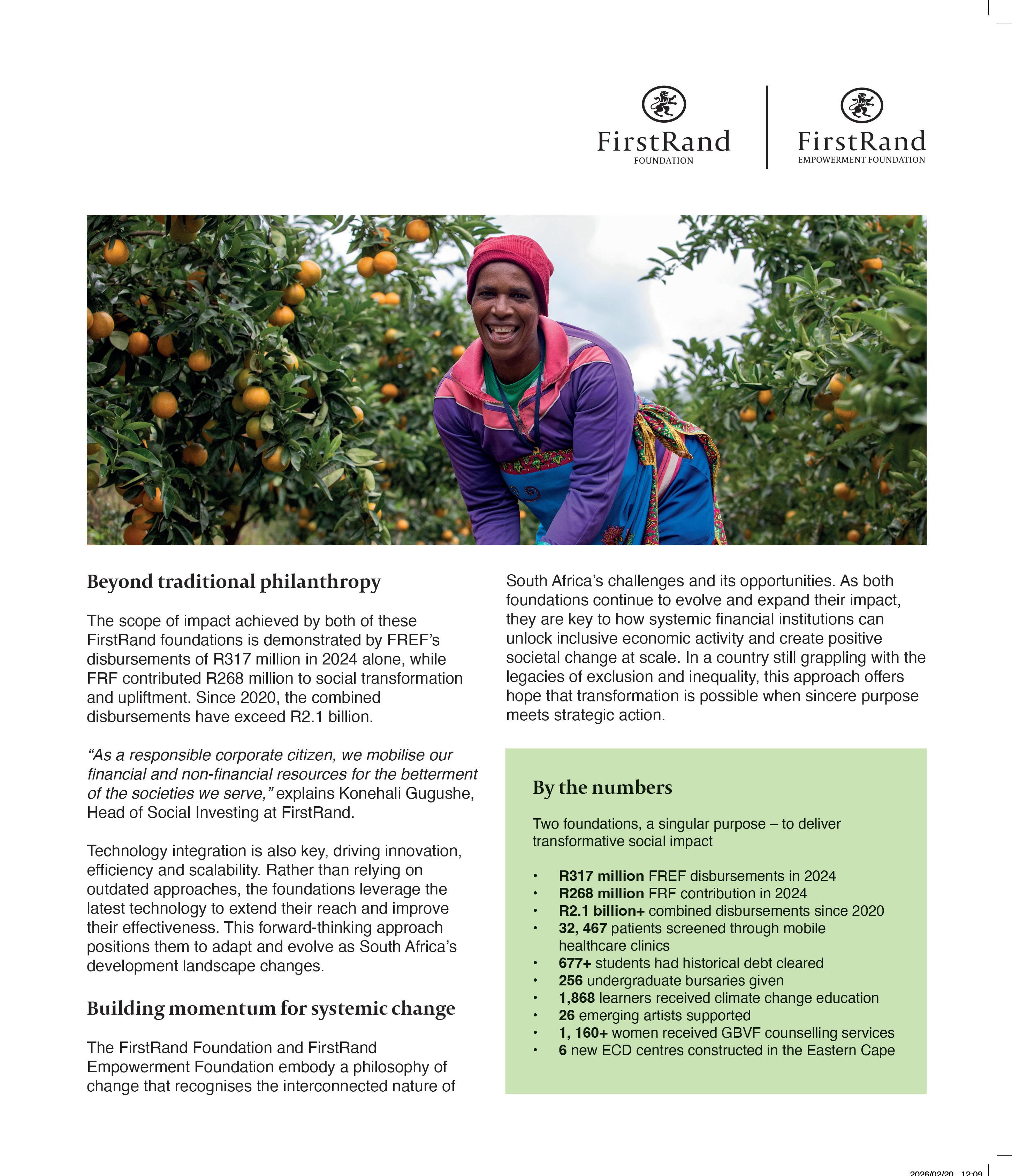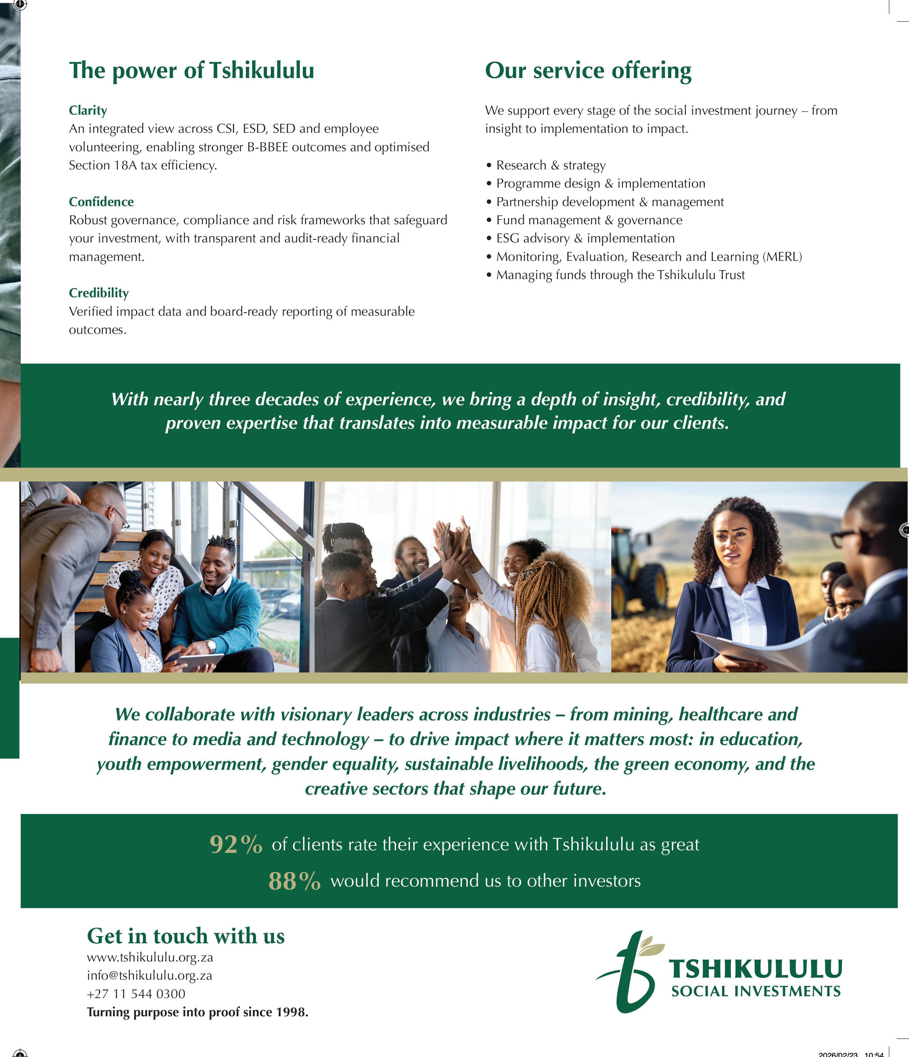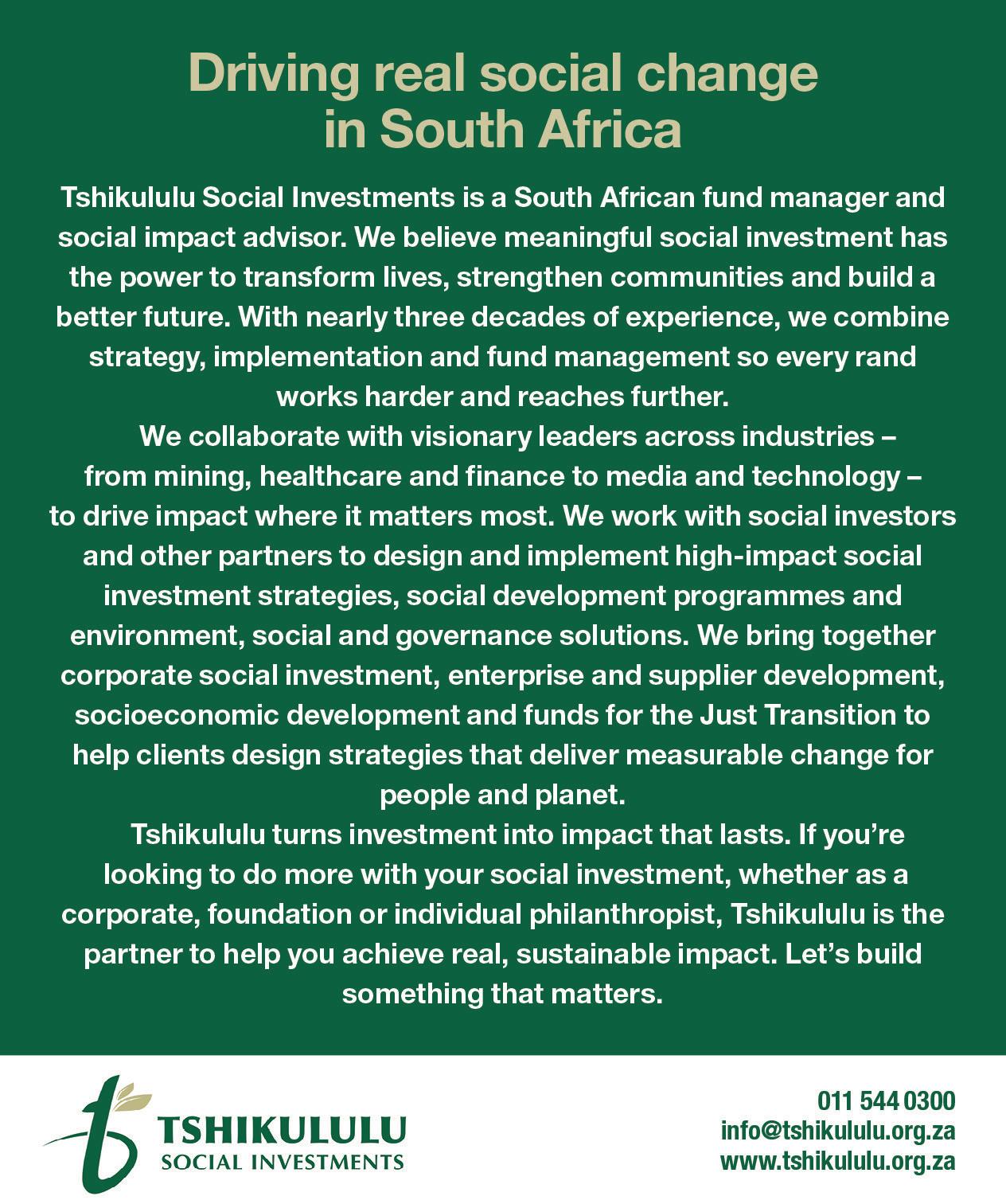 We also look at the latest trends in social impact and how organisations throughout the country are aligning their corporate social investment (CSI) with a sustainable approach to development. More corporates are realising that social responsibility is much more than a photo opportunity; it needs to make a lasting change to communities in need.