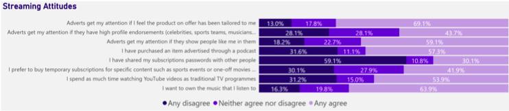 On a deeper level, how we communicate to audiences on audio platforms will drive engagement. Audience Origin reveals that advertising on streaming platforms is noticed; however, 61% want the ad to be tailored to them – and if they can relate to the people in the ads, their attention is further piqued.