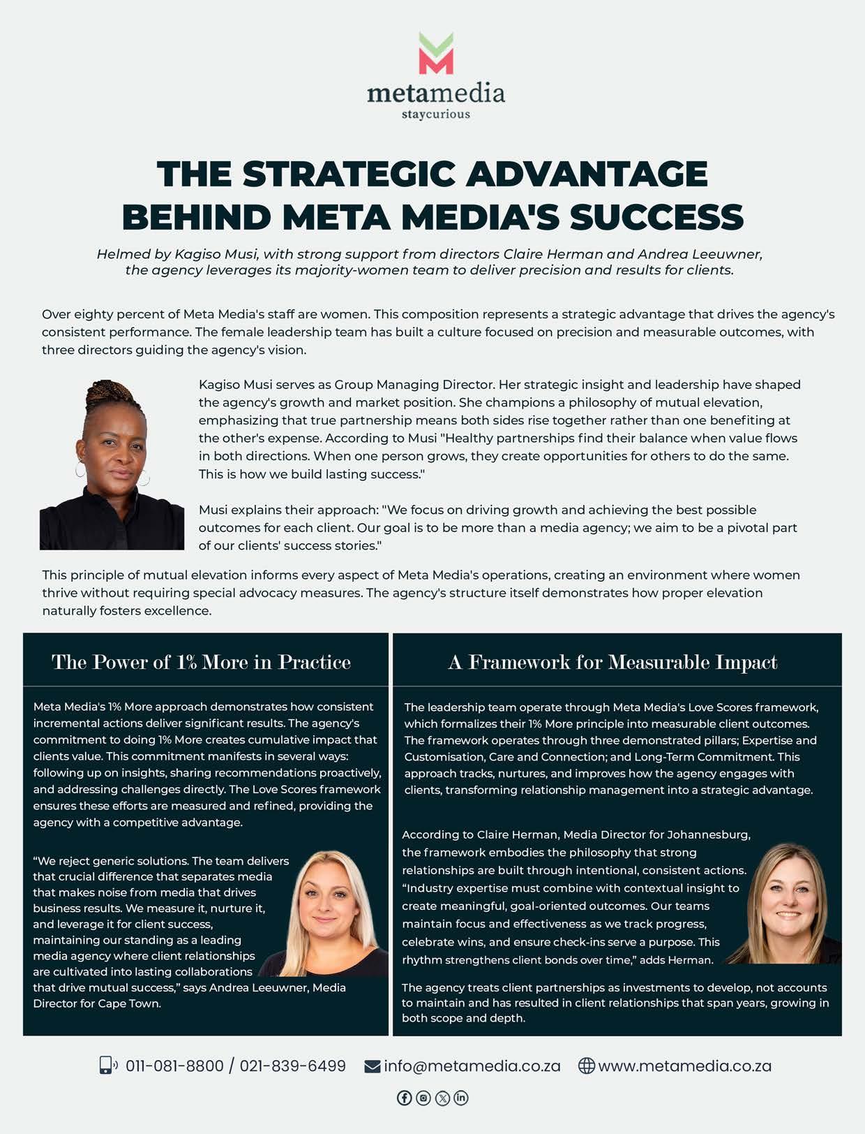 Over 80% of Meta Media’s staff are women, strategic advantages they believe have shaped the agency’s growth and market position.