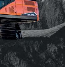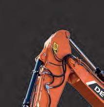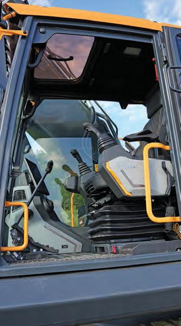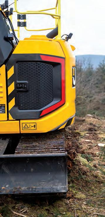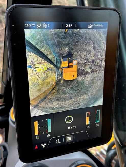 multi-camera set-up, which replaces the innovative four-camera advanced around view monitoring (AAVM) system. The new smart around view monitoring (SAVM) system boasts six high-resolution cameras, three of which are embedded in the counterweight. The feed from all the cameras is monitored by an artificial intelligence (AI) system to detect a person encroaching into the machine’s operating radius, which is displayed on the monitor, accompanied by an audible warning.