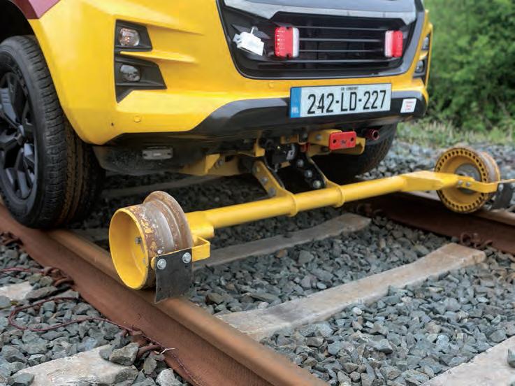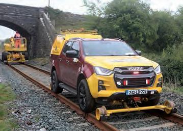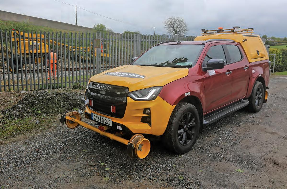 An Isuzu 4x4 crew cab vehicle converted for road-rail plant operation.