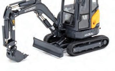 In the conventional 1:50 construction scale, one of the most detailed and visually stunning models to be released is the HX35Az miniexcavator. Despite its diminutive stature, it has been perfectly modelled, with a working dozer blade on the undercarriage, good movement of the front-end equipment and accurate replication of the cab interior. The small details, like the protective covers for the hydraulic rams and the rear-view mirrors, lights and aerial all stand out.