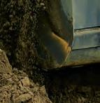 with its biggest bucket on board. However, the sandy soil was damp and therefore pretty heavy. With a full big bucket load slewed over the side I certainly felt it, but trying hard to unsettle the machine it largely remained planted to the ground.