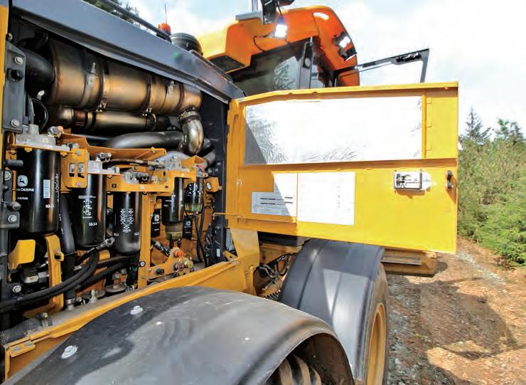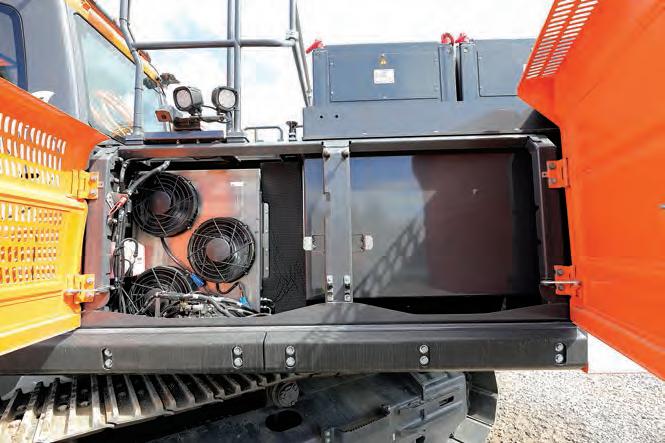 Above and below: The HX360 is powered by Hyundai’s new six-cylinder, 7.5-litre DX08 engine. Service access around the machine is exceptional.