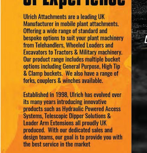 Large stock of telehandler attachments, loading shovel and excavator buckets, 4-in-1 and standard buckets, winches, grabs and rippers.