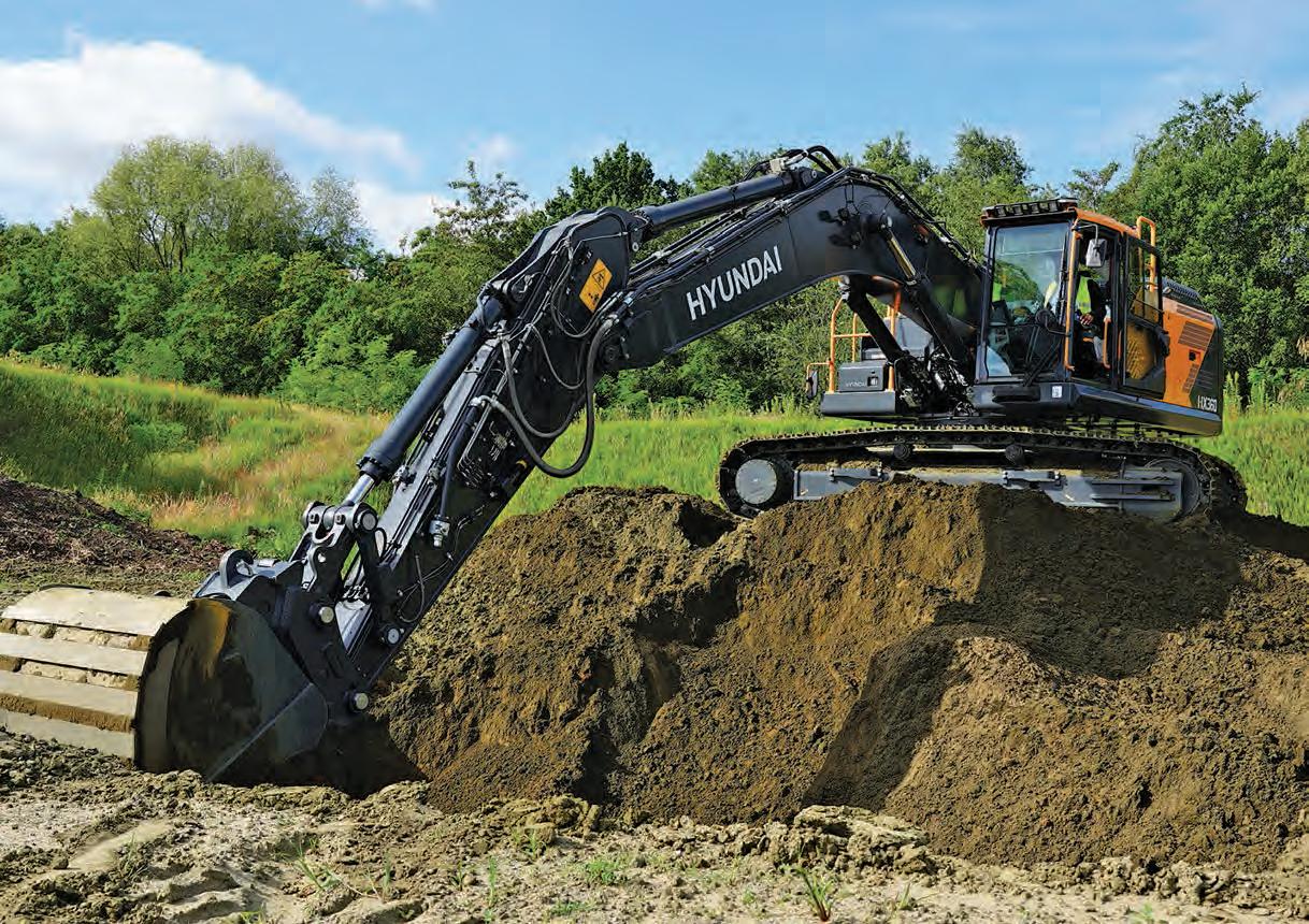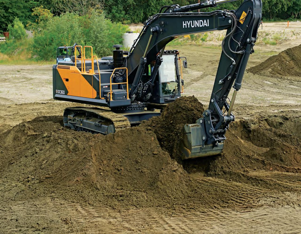 Two examples from the next generation of Hyundai excavators were shown to the public for the first time at the Bauma show in April. The HX360 was the focal point of the daily demonstrations on the stand, while the HX400, complete with a straight demolition boom, took centre stage as a static display. I recently had the opportunity to spend some time operating the new HX360 model at a construction industry training school not far from Hyundai’s European HQ at Tessenderlo in Belgium. Walking around the machine, I could not fail to be impressed with the dynamic and bold styling. However, this new generation of excavators is not just a cosmetic makeover, but features a new driveline, a superb cab and a host of new technologies.