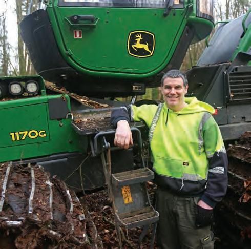 Consequently, Seamus formed Seamus Bergin Timber Harvesting Ltd back in 2007 and has maintained a regular machine replacement policy to maintain consistent performance and reliability. The current eet consists of three units, a John Deere 1170G purpose-built harvester with extraction catered for by a John Deere 910G as well as an older generation John Deere 810E model.