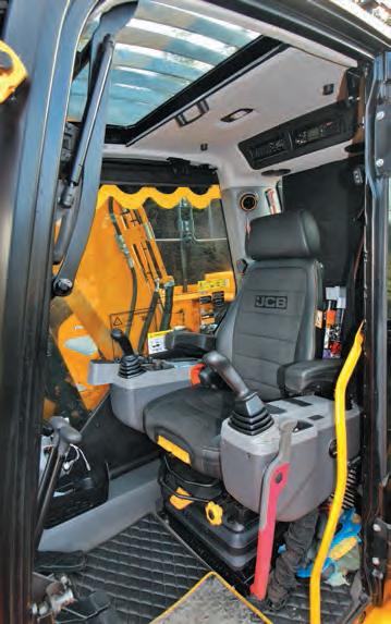 the xed cab route. Another bene t is that it helps keep the machine’s weight low as the optional slewing and levelling cabin results in an increase of about 1.5 tonnes in weight. This all adds up when you’re trying to keep the machine as light and ground friendly as possible,” says Seamus.