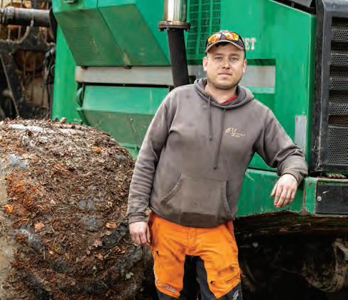 To increase traction, he often loaded the modi ed front blade with shorter logs. This allowed the tracks to transfer even more weight to the rear driving wheels, improving the grip, albeit sometimes at a cost. “In 10 years, I broke three half-shafts due to the incredible torque,” he recalls.