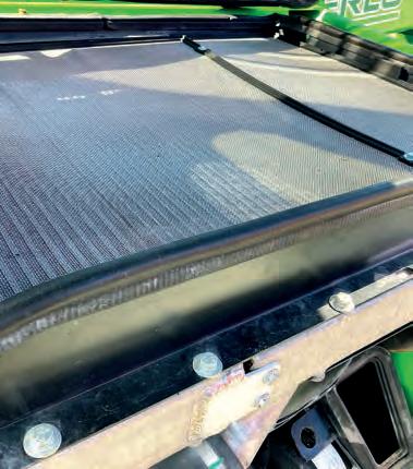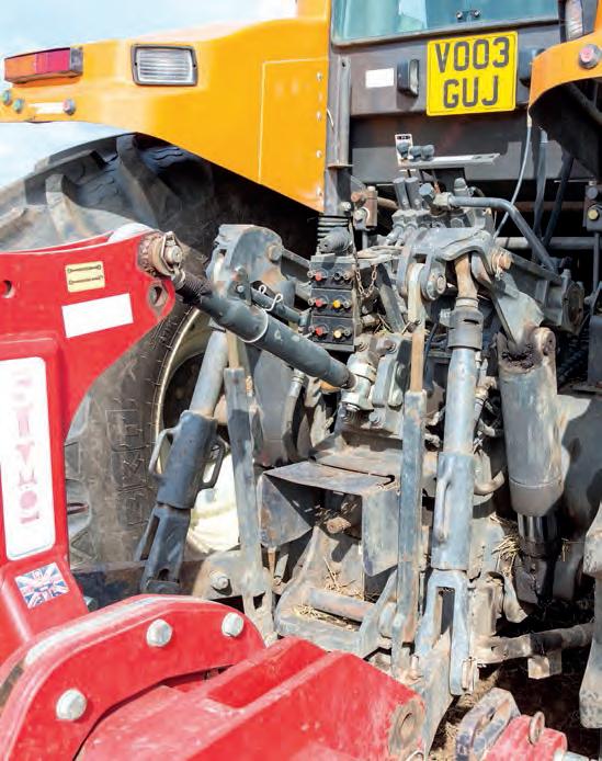 “If you’re a Valtra operator, driving the Q series should be seamless”Right: The cooling pack is easy to access, with hatches to facilitate cleaning between the various exchangers Below: The front linkage capacity is rated to 4.8t, with ISObus and two SCVs ex-works. A free oil return is also fitted Above inset: Valtra side markers with LED strips are fitted on to a mirror arm and are a useful addition for wider implements Left: The front indicator cluster has had a Q Series touch, with LED turn and side lights