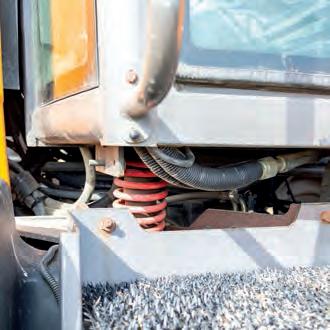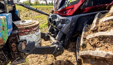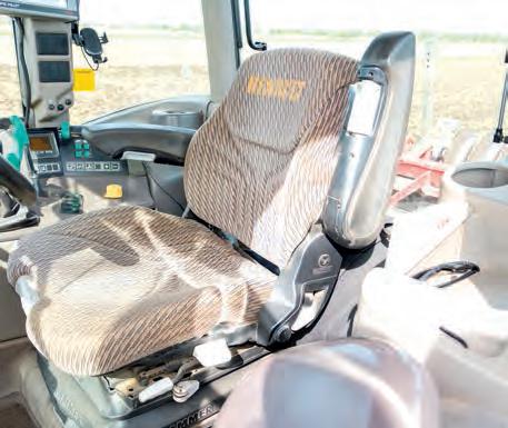 flinching and purred away under load. Valtra has made an excellent job of marrying the engine and transmission. The front axle is air suspended on the Aires system, offering a good lock and, for a 300hp tractor it didn’t feel numb on the headlands. You could keep the turns tight and with QuickSteer lock-to-lock is achieved with only a single turn of the wheel.