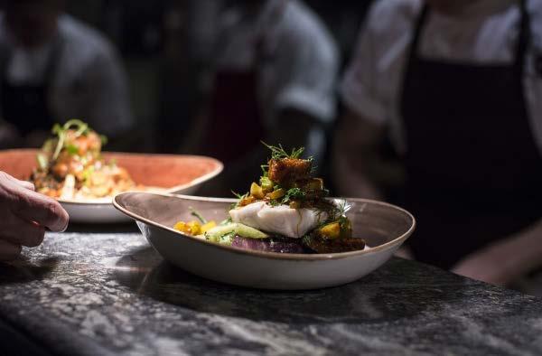 som hänger uppe i taken. I anslutning till restaurangen finns även ett närlivs och bageri och under sommarhalvåret är det drygt 80 personer som arbetar i olika delar av verksamheten.