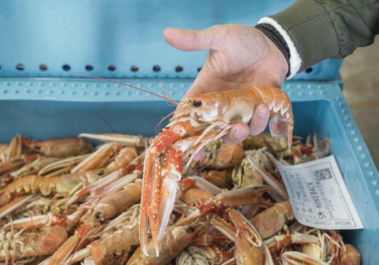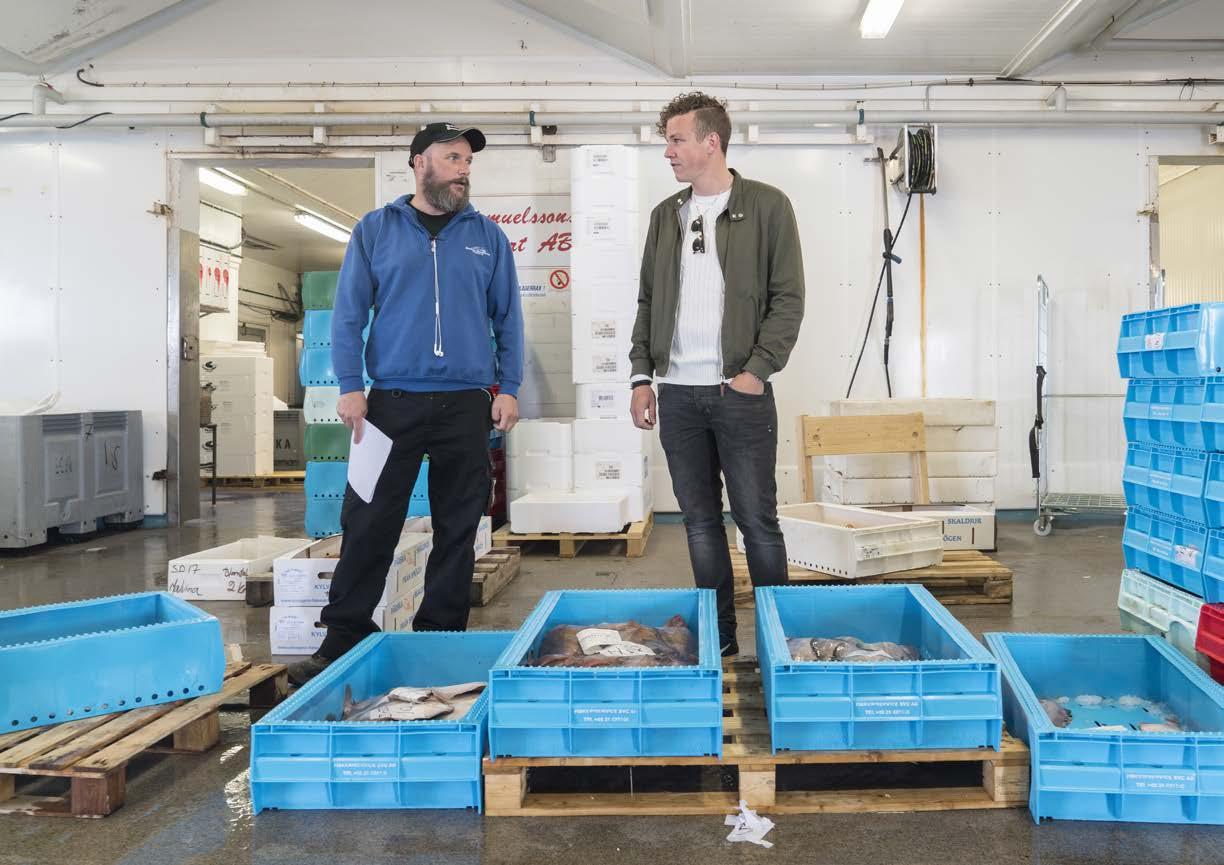 samla idéer och inspiration till nya rätter. Burfångade kräftor, räkor, torsk, kummel, sill, makrill och musslor. På auktionen finns fisk och skaldjur i alla dess former. Thomas berättar att hans ambition är att kunna erbjuda gästerna en speciell kvällsmeny som är baserad på fiskhandlarnas finaste fångst just den dagen.