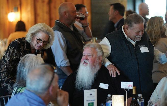 From top: Andy Heitmann speaks during an EDC event; Chris Guiterrez visits with other chamber members at an EDC event; Rick McDowell and Shelly Milburn share a laugh at the EDC office. (BottomphotobyDominickWilliams)
