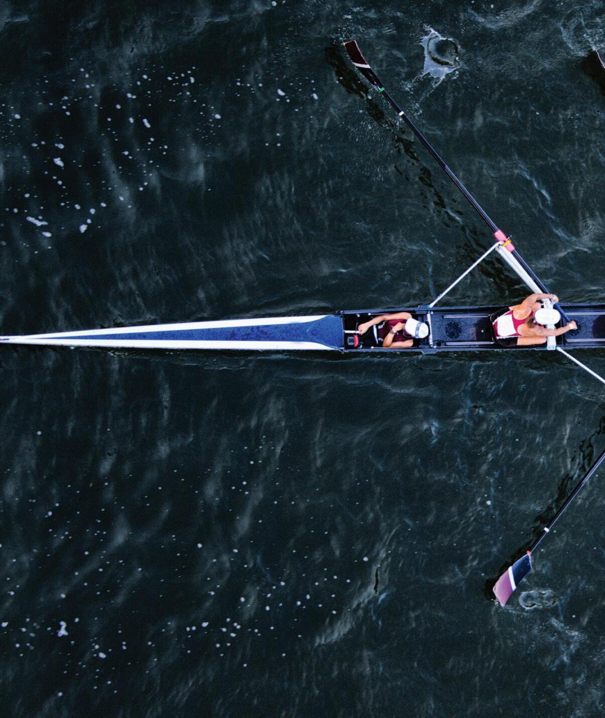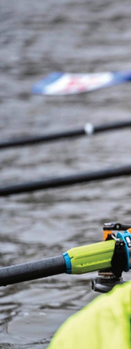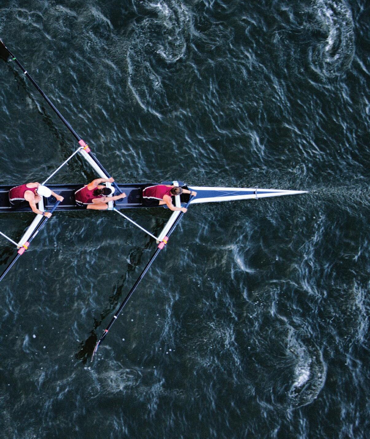 The reference to ‘top boat’ refers to the strongest rowers being placed in the first varsity eight-man boat or the first varsity four-man boat. The team typically enters four or five races in each regatta: 1V8 (first varsity eightman boat), 2V8, sometimes a 3V8, as well as a 1V4 (first varsity four-man boat), and 2V4. Coaches can and do mix up a boat’s roster depending on technique, strength, or ability to switch sides.