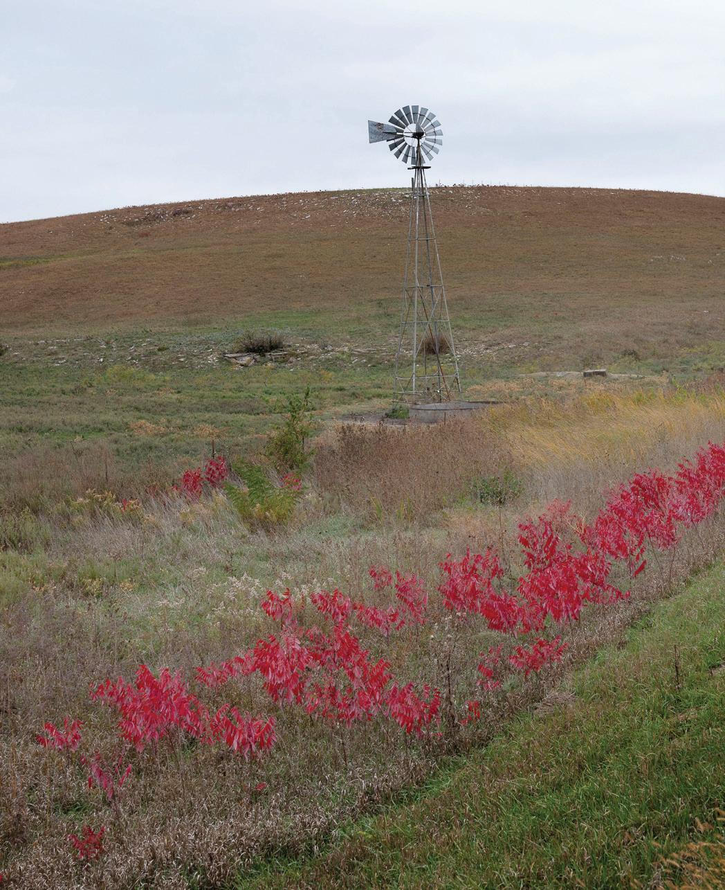 Around Topeka, there are several scenic routes that provide beautiful views of the landscape and fall colors. One of our favorites is the Skyline Road in Wabaunsee County. The approximately 14-mile drive combines breathtaking views of the Flint Hills with passages through dense, colorful foliage. We asked photographer Bill Stephens to travel along this road last autumn and share some of the scenic sights. Try your own tour, when you can. If you’re driving in the evening and want to keep the sun out of your eyes for most of the drive, exit Topeka going west on I-70, turn south at Alma and continue south through Alma on Highway 99 for about one mile until you see Skyline road off to the east; follow it until it ends at Highway 4, which is also the eastern leg of the state’s Native Stone Scenic Byway. It will take you past Echo Cliff Park and back into Topeka.