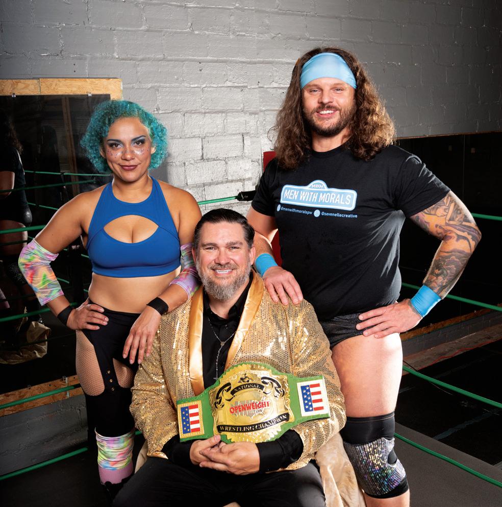Promoter Daniel Brown (center) is working with wrestlers such as Burt Cameron (left) and Judie Salazar to strengthen local, independent wrestling leagues.