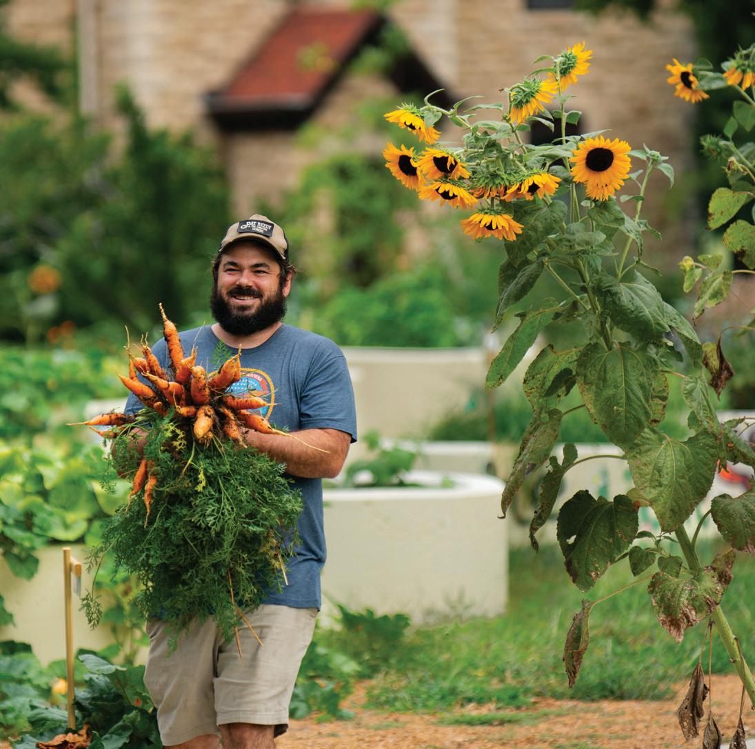 Willie Madl harvests a pepper from the Bethany Gardens.