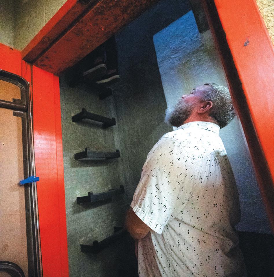 Dusty Nichols guides visitors through offices below the county courthouse; the underground area was designated as the post-nuclear-attack command center for the county.