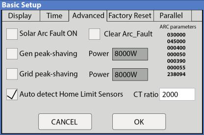 5. (OPTIONAL) Hit the back button and navigate to “Basic Setup” then go to the “Advanced” tab. Make sure the Grid peak-shaving box is enabled. Set the max threshold wattage next to the box you checked.