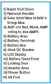 3. If your system is on, the rapid shut down button will be on, the breaker will be flipped on, and the LED screen will be lit up on each battery.